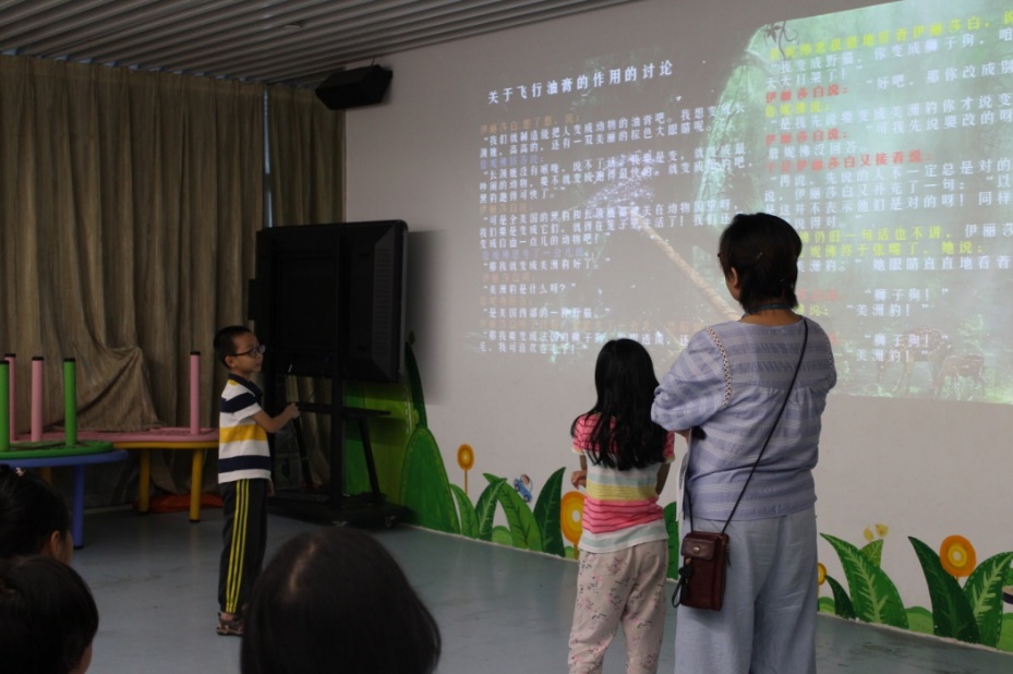 想知道终极任务:“飞行油膏”完成之后,两位小巫婆对涂油膏之后,将变成什么有趣的动物进行激烈的讨论?两位小读者自告奋勇,惟妙惟肖的演绎两位巫婆争论的场景。在场其它听得入迷的小读者仿佛置身故事场景,不禁为两位小演员拍手鼓掌,或许每人心里都有自己的答案呢。