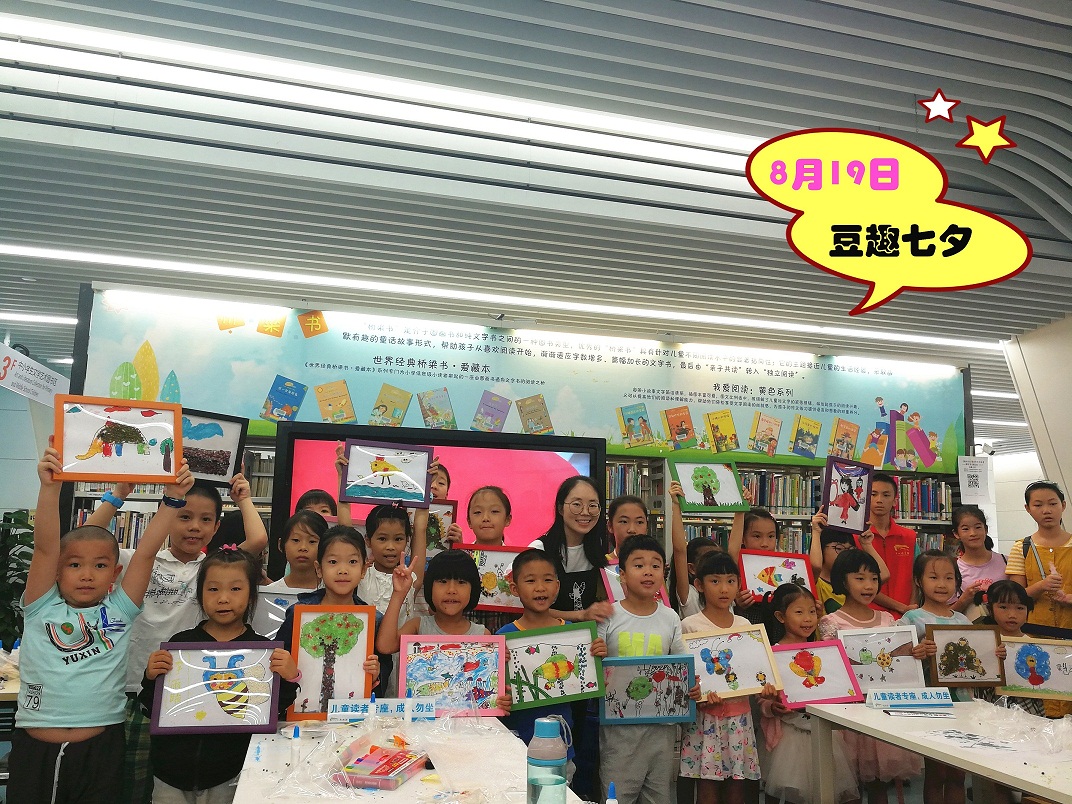 “七夕今宵看碧霄,牛郎织女渡河桥”。七夕佳节,自古以红豆寄相思,但在小朋友的眼里,红豆却充满了童趣。8月14日,树华美术的李老师就与小朋友们一起“豆趣七夕”——进行豆子粘贴画的创作。为了加快彼此间的熟悉,李老师首先与大家一起玩了热身游戏“击鼓传柠檬”,气氛随即活跃起来。接着,李老师正式向大家介绍豆子粘贴画的具体步骤,这看似复杂,实则是色块间粘贴步骤的不断重复。在制作过程中,虽然有小朋友认为这项任务具有一定的挑战性,但在老师与志愿者的帮助下,作品顺利完成了。这别出心裁的豆子粘贴画,又何尝不是送给自己及家人最好的七夕节礼物呢?