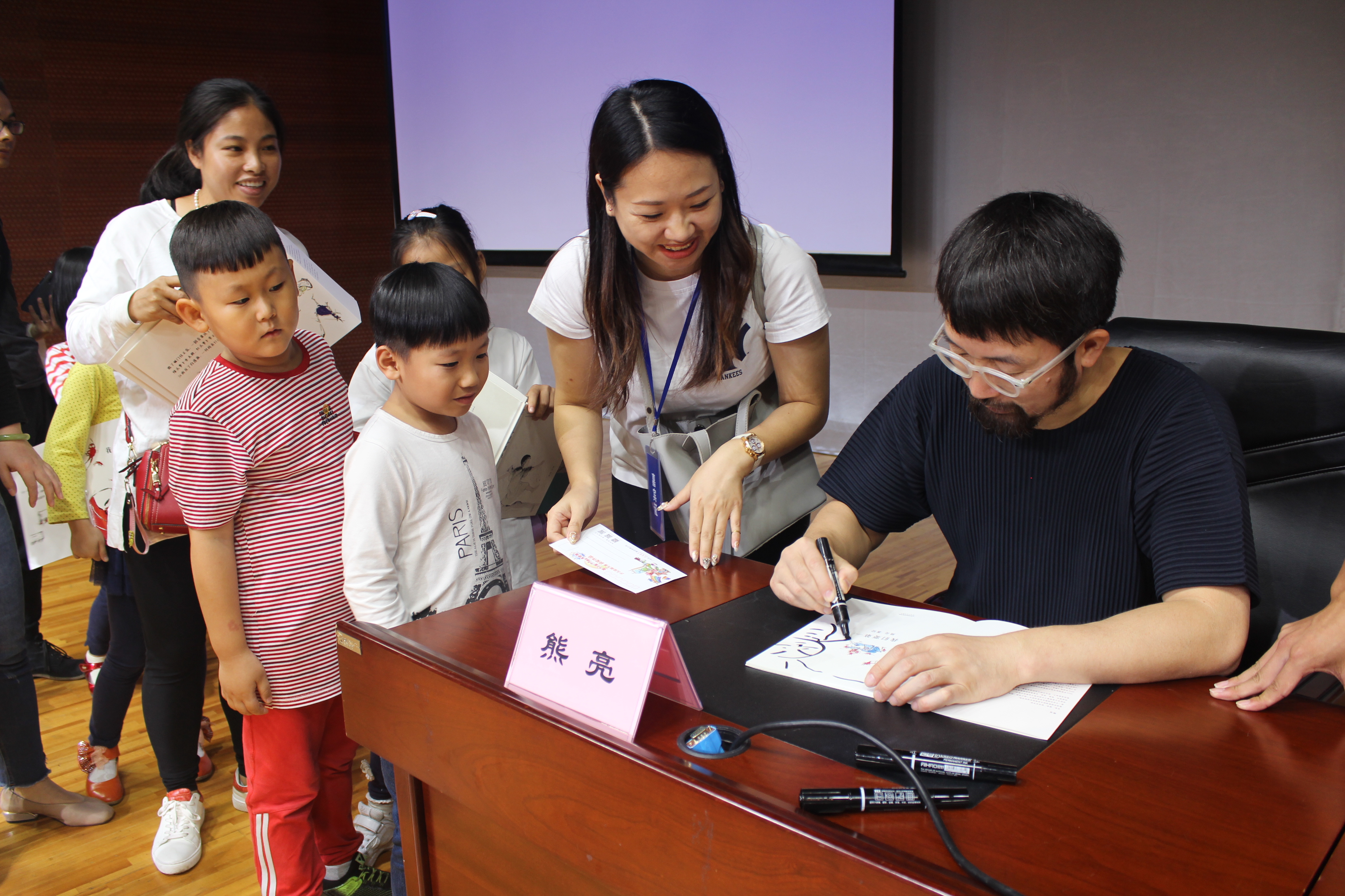 在互动环节,熊亮老师生动地解答了分别由大小读者提出的各种问题。到了签名环节,熊亮老师表现出极具亲和力的一面:除了签名以外,还根据书的主题绘上主角的形象,每副画作不尽相同。