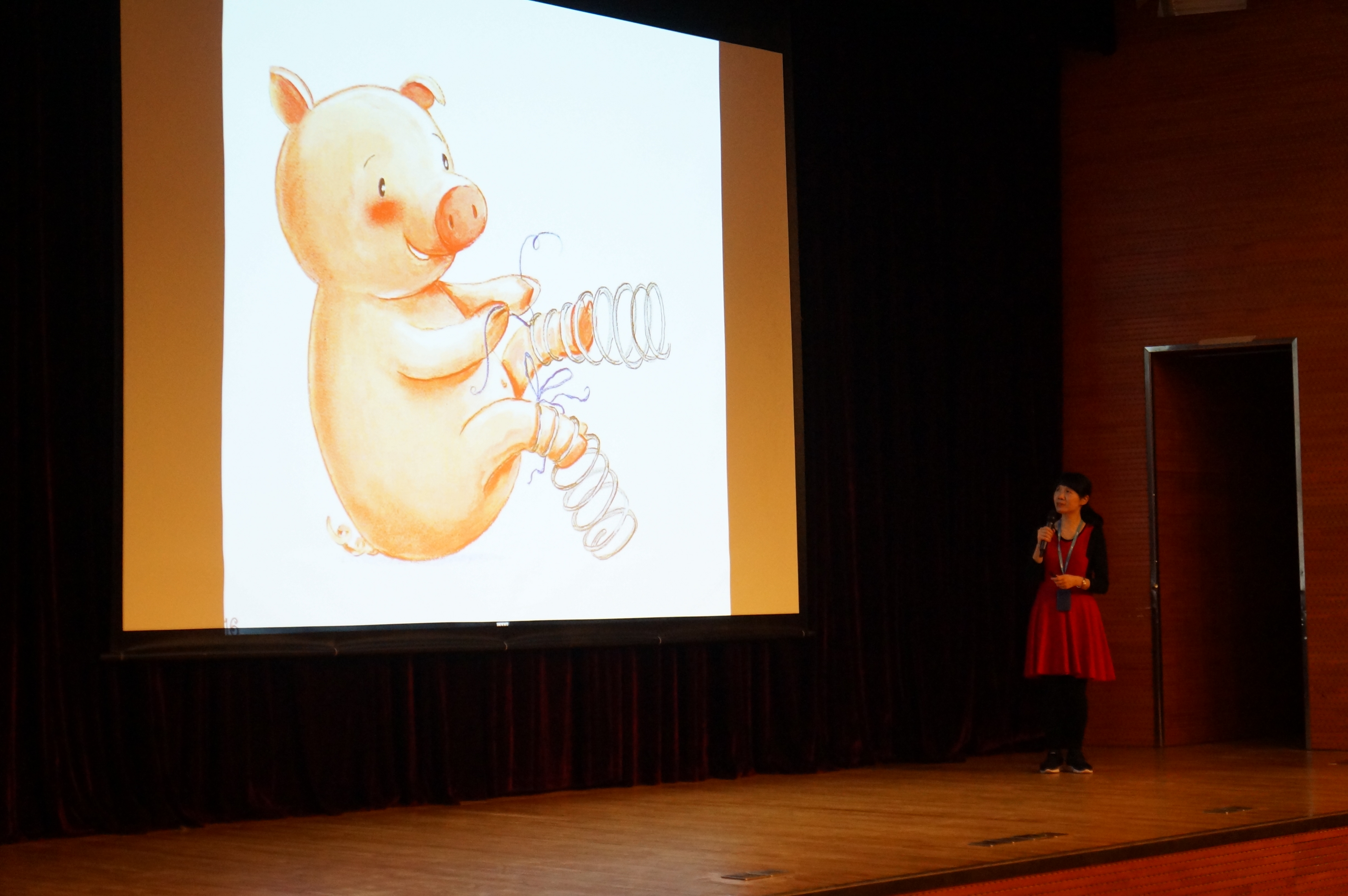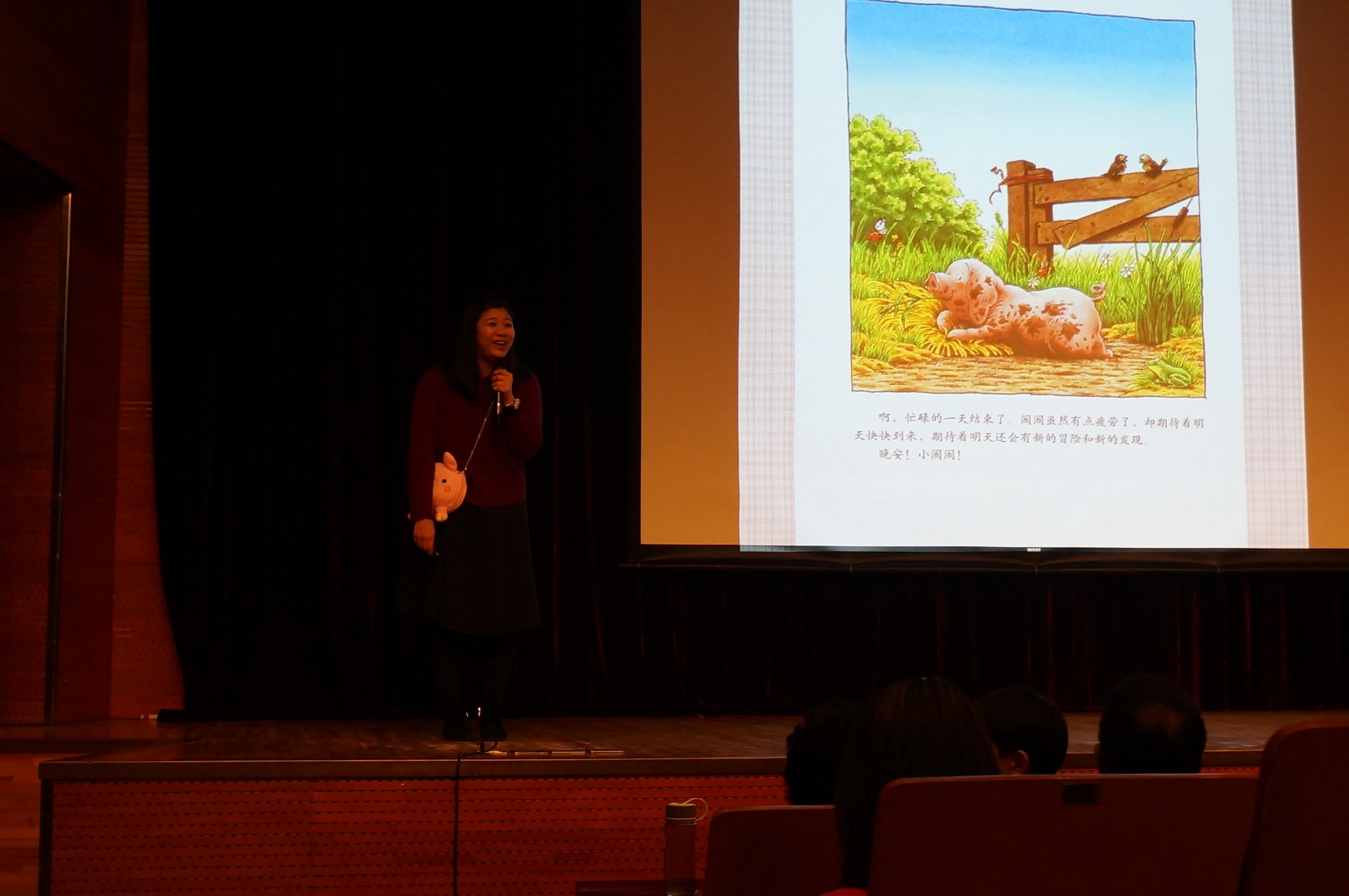 随后新华悦读会的冰冰姐姐带来《小猪闹闹》的故事,把故事中那只调皮乐观的小猪惟妙惟肖地呈现在大家面前。