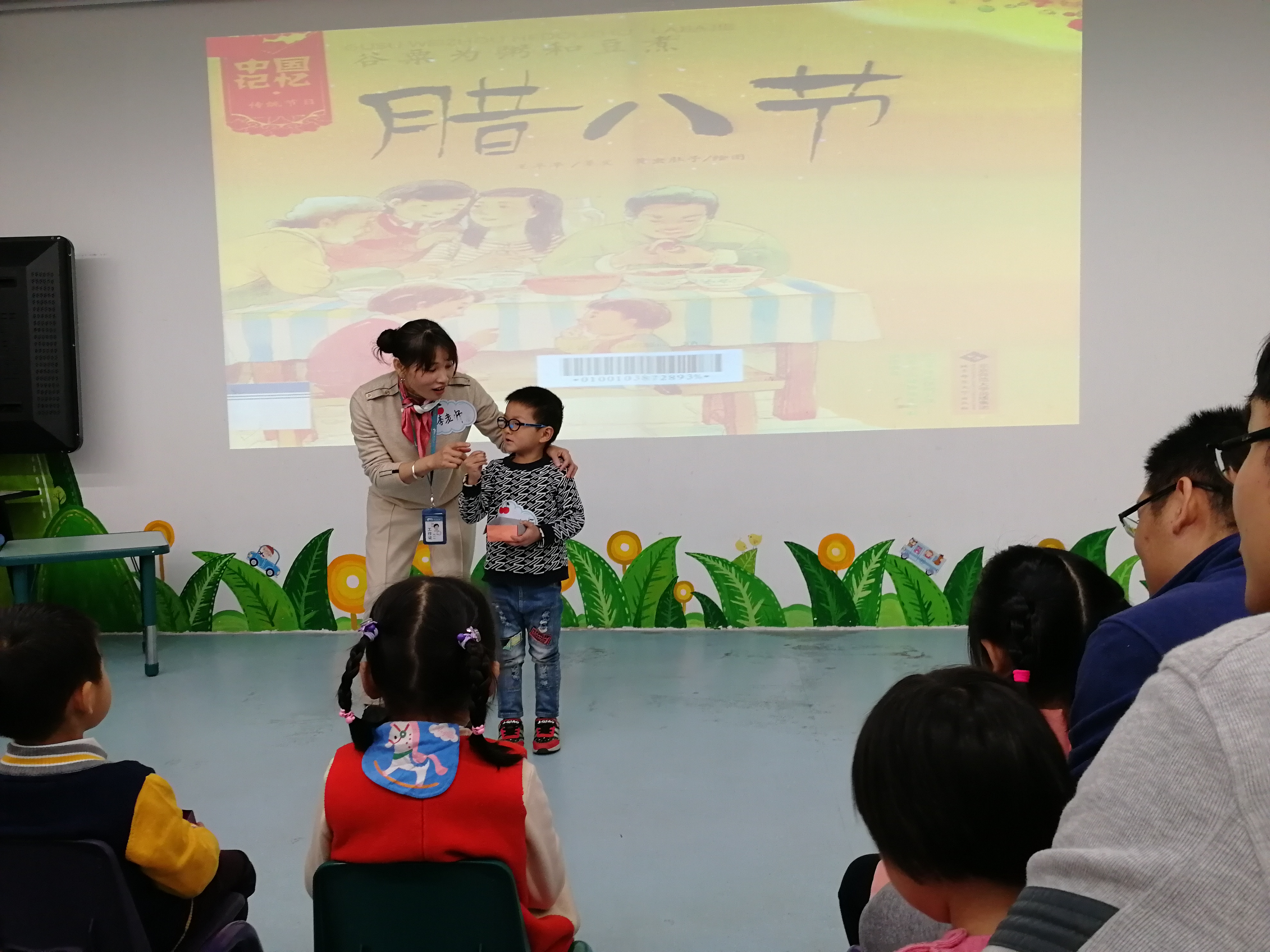1月12日,惊喜连连哦,李老师通过绘本《腊八粥》给孩子们普及传统文化。红豆、核桃、红枣、莲子···每颗坚果中都蕴含着中华民族几千年来的特殊情感。李老师还特地准备了很多腊八粥材料,让孩子们辨认不同材料,并放进自己折叠的盒子中。