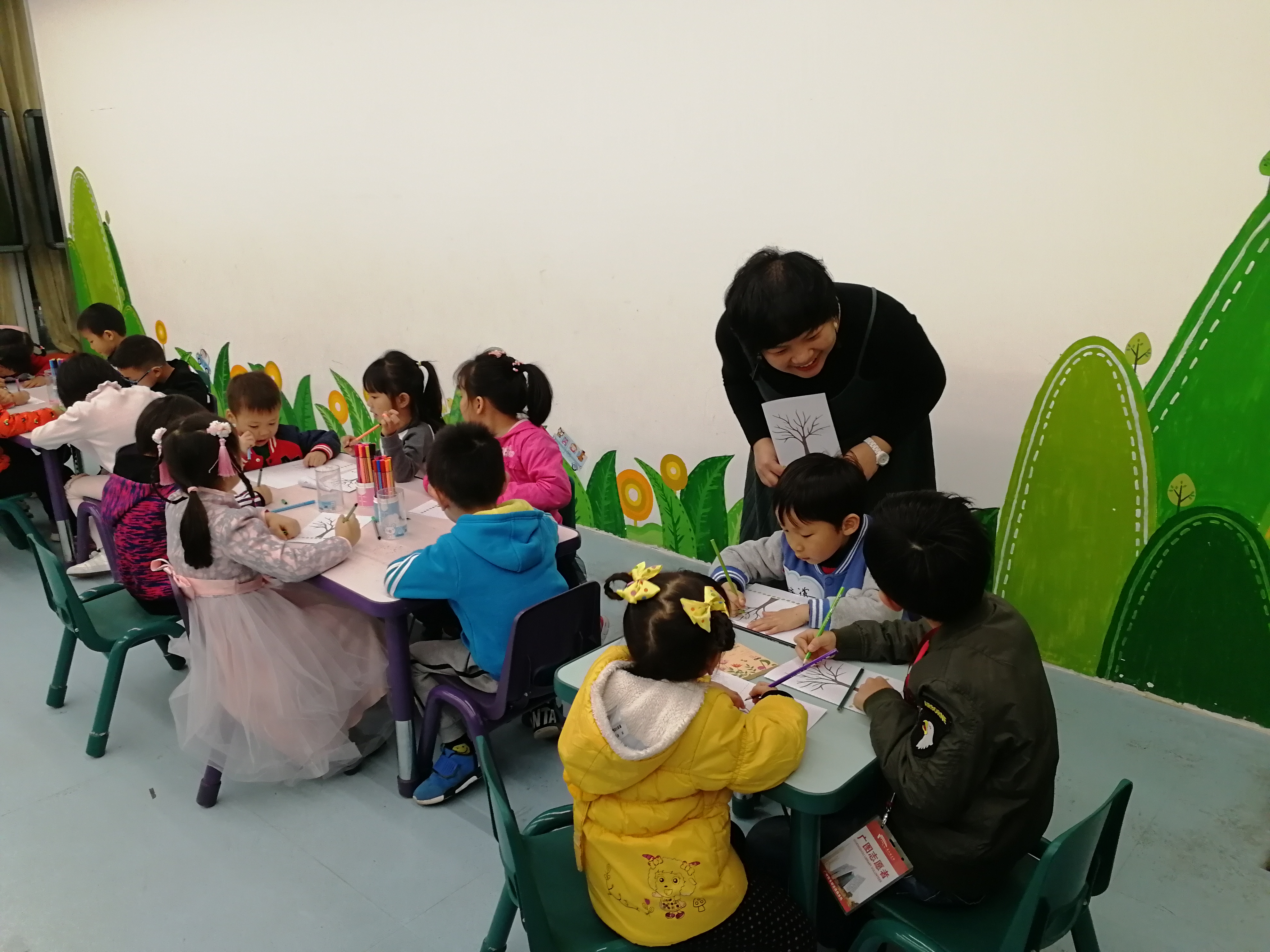 1月19日,一场和绿色约会的盛宴。《Green》绘本中的各种绿元素,在Rainbow老师生动形象的展示下跃然于眼前。之后,孩子们纷纷用笔画出心中最爱的那款绿,为这场盛宴画上一个圆满的句号。