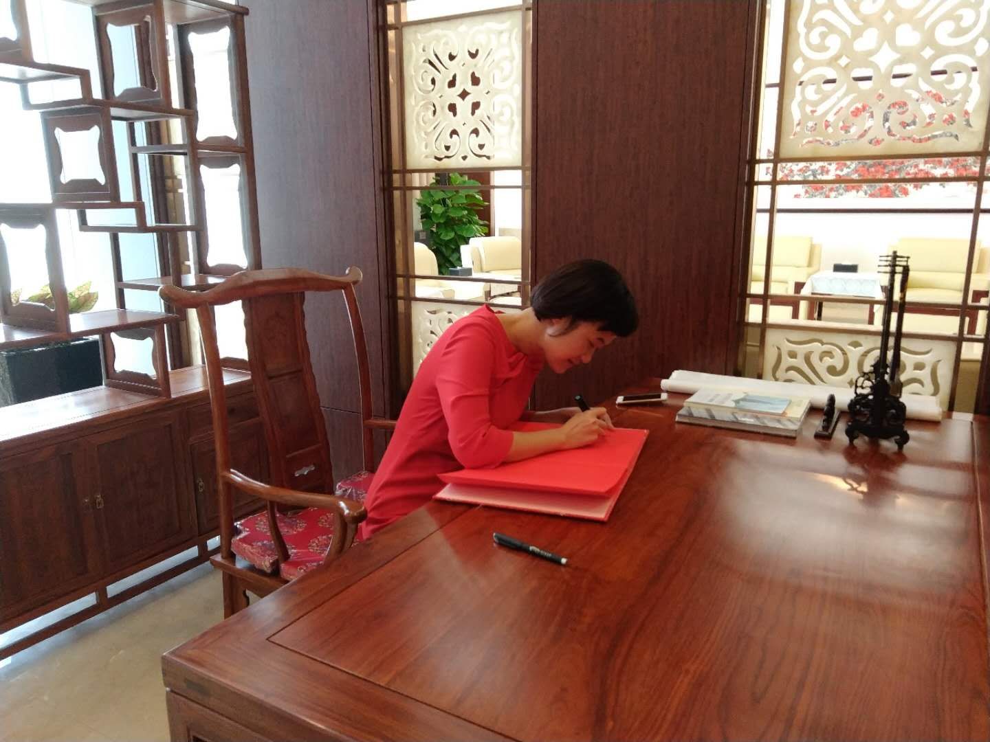林丹老师发言结束后,她还向广州图书馆送上自己亲笔签名的代表作《我的家》一书,由儿童与青少年部副主任冯莉代表我馆接受赠书。
