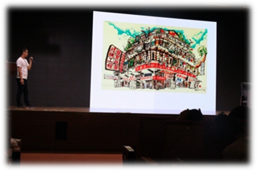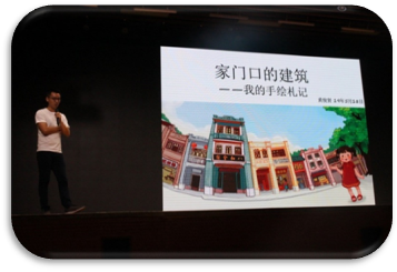 “家门口的建筑——我的手绘札记”系列讲座在1号报名厅如期开讲。此次讲座邀请的主讲人是建筑师、插画师黄俊贤老师、插画师罗钰滢老师。活动主持人介绍大赛背景与活动介绍之后,培训正式拉开帷幕。