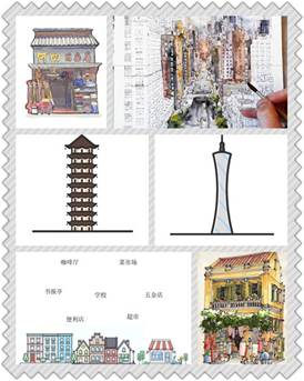 艺术来源于生活,什么是建筑之美呢?黄老师展示不同的城市地标建筑手绘作品,并将它们划分为地标建筑和社区建筑,比如“咖啡厅、书报亭、便利店、超市”等。各式色彩斑斓,形状各异,立体感十足,又让人们备感亲切的建筑作品刹那间吸引了读者们的注意力。当黄老师提问:请你们说说“家门口的建筑”有哪些呢?小蛮腰,骑楼街,五羊建筑,镇海楼,陈家祠,中山纪念堂,广州图书馆……小读者们如数家珍,他们纷纷表示,原来我们的家,真的很美。