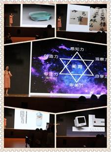 谈及设计美感,罗老师告诉小读者们,审美没有特定标准,合适就好。她继而展示方形“矿泉水瓶盖”、早期苹果电脑以及其Logo等现代作品设计,和现场小读者一起感受设计之美。罗老师倡导可运用传统文化到设计中去,达到“行云流水的舒畅感”。罗老师通过分享宋徽宗的书画、寻找“天光色”以及丰子恺先生的作品,阐述审美感悟,不失专业而又通俗易懂的讲解,令小读者听得甚是入迷。