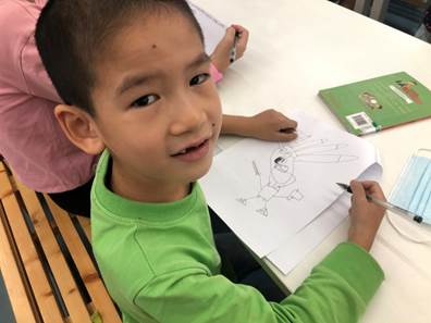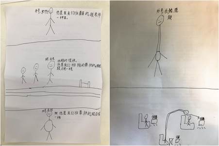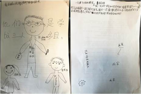 三个孩子上台讲述自己画的人物和特征。