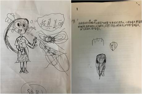 其中一个女孩画的是:我心目中的女学霸。在上台讲述的时候,她描述了学霸的形象。