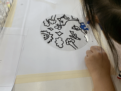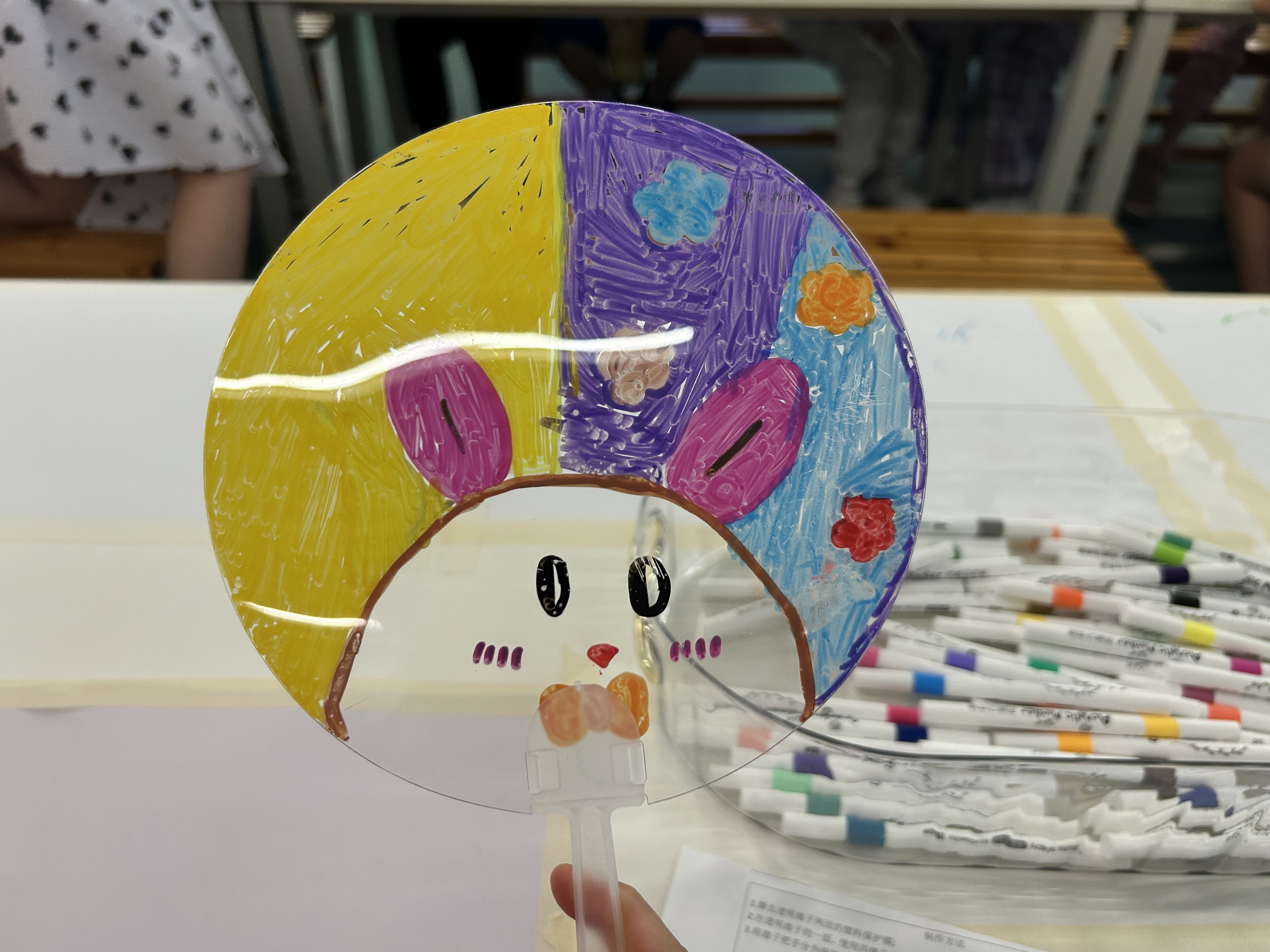 可爱的猫咪、碧绿的西瓜、彩色的房子、辽阔的草原……,小朋友的想法天马行空,画出的扇子也是五彩缤纷。
