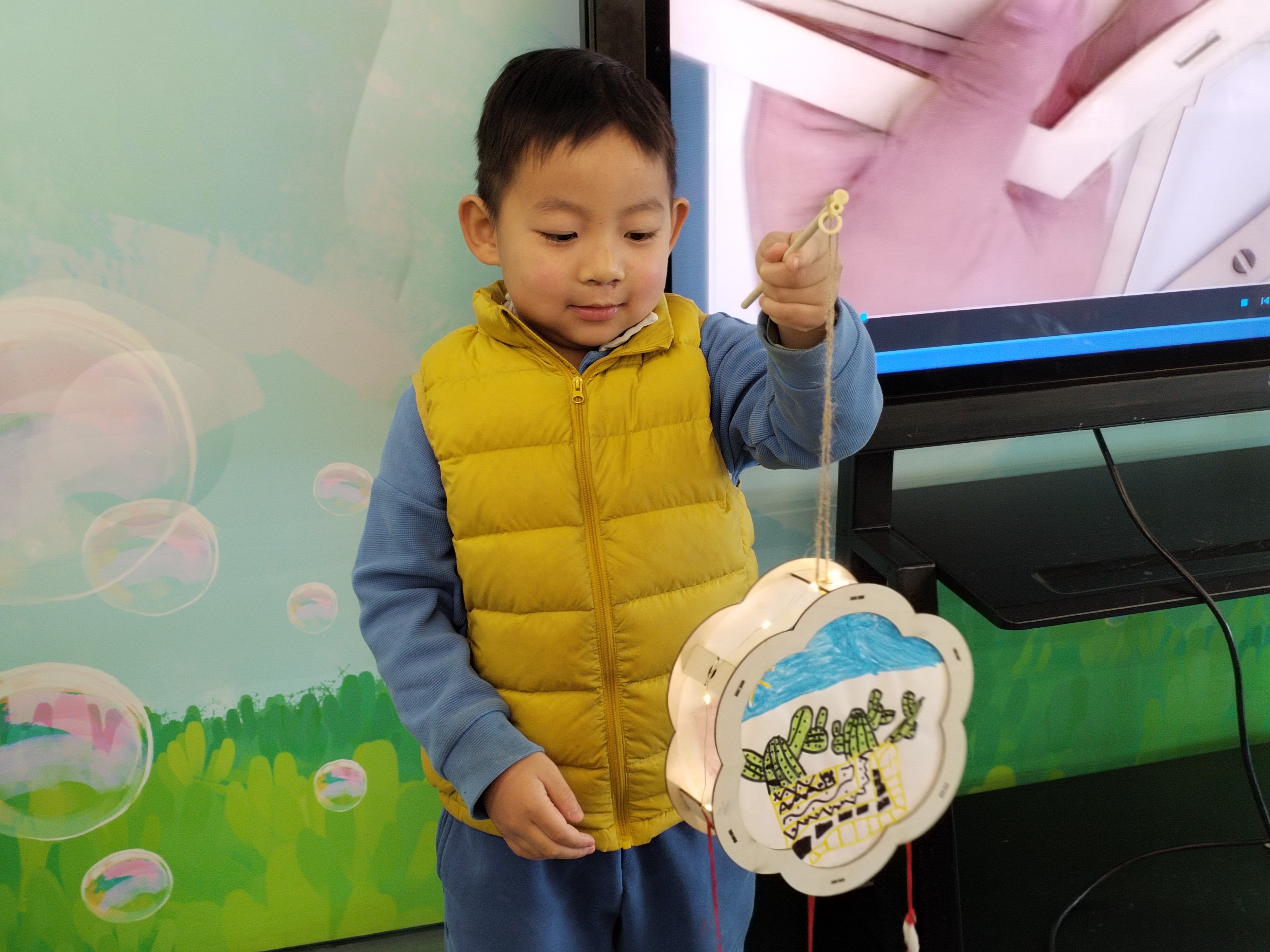 完成灯笼制作后,孩子们迫不及待地展示自己的作品,志愿者同学给他们拍照留影。孩子们手持灯笼,并与其他家庭分享制作心得和欢乐时光。