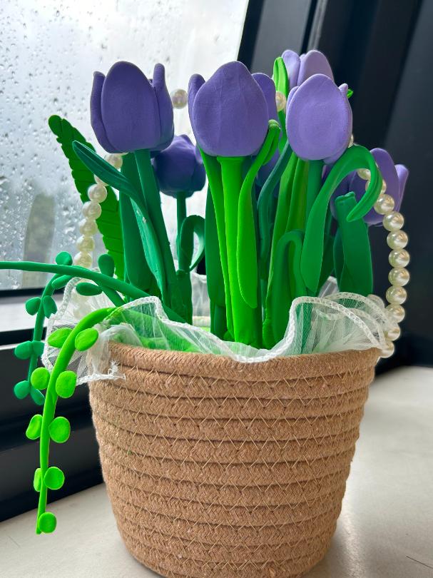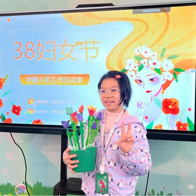 孩子们手捧着凝聚着自己心血与爱意的粘土花束,