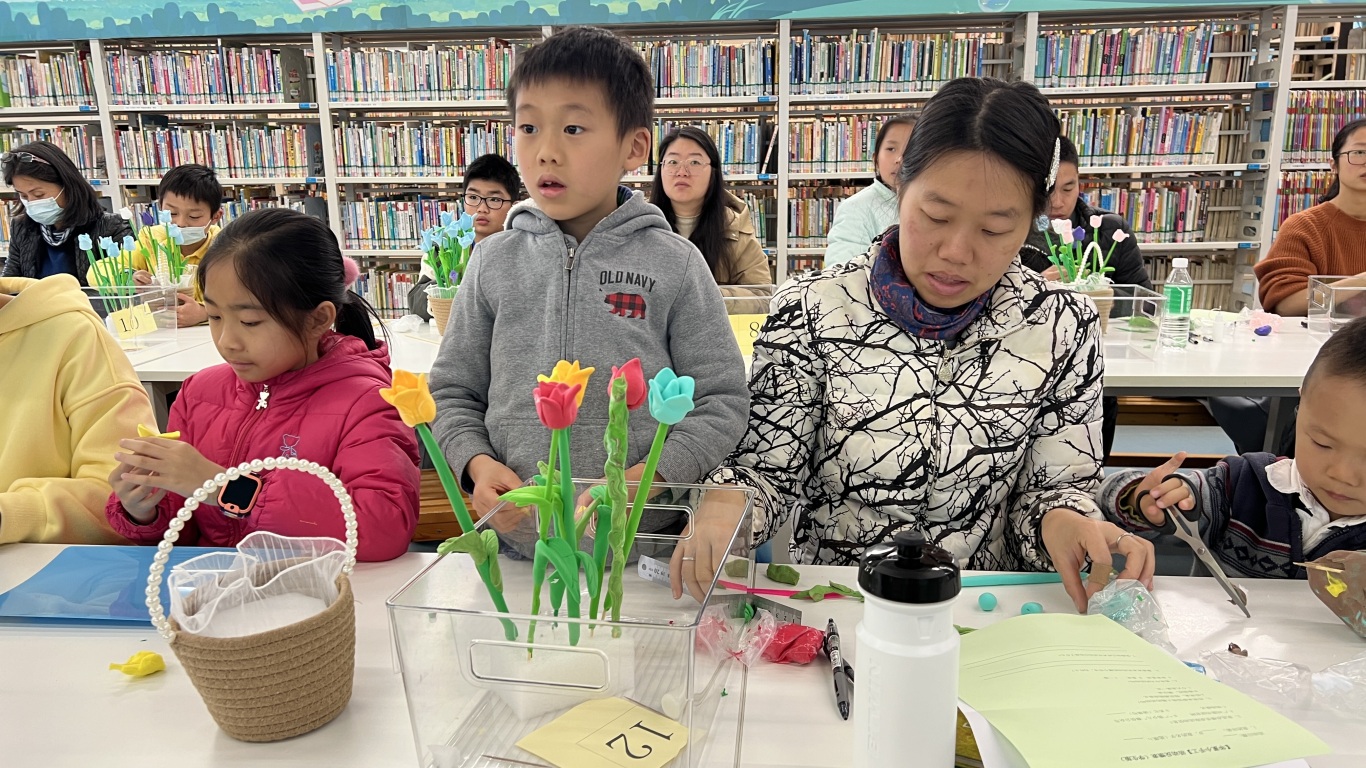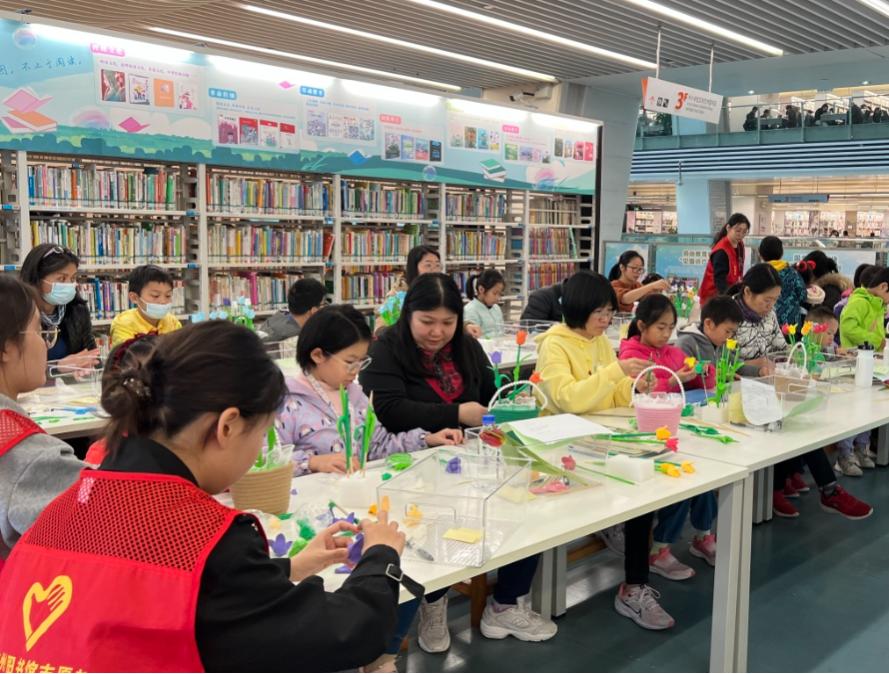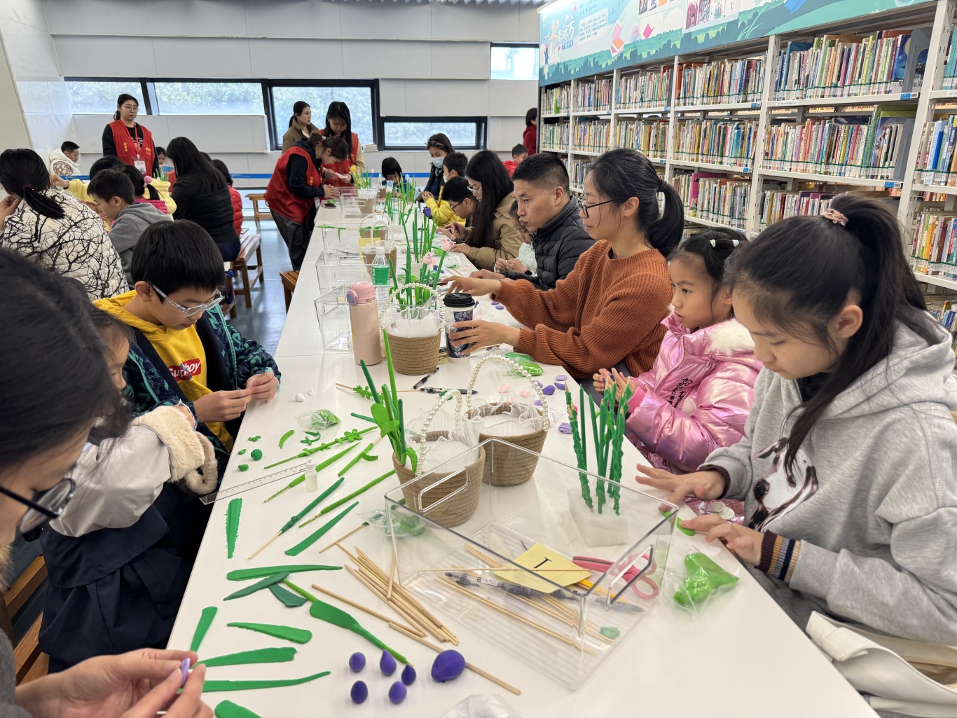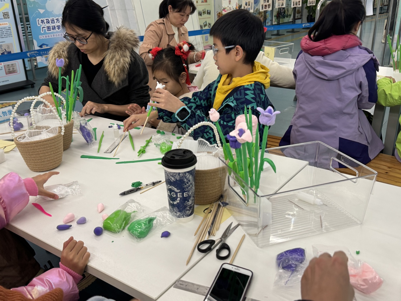 3月8日国际妇女节当天,广州图书馆南三楼的少儿阅览区被温馨与欢乐的氛围所环绕,一场充满爱意的亲子粘土花束制作活动在此圆满举行。此次活动精心邀约了13组7 - 12岁的读者亲子家庭参与,旨在借助妇女节这个特殊契机,为孩子们搭建一个表达情感的平台,让他们通过亲手制作粘土花束,向身边的女性长辈倾诉敬爱与感恩,同时也为亲子间创造互动交流的空间,培育孩子的动手实践能力与创新创造思维。