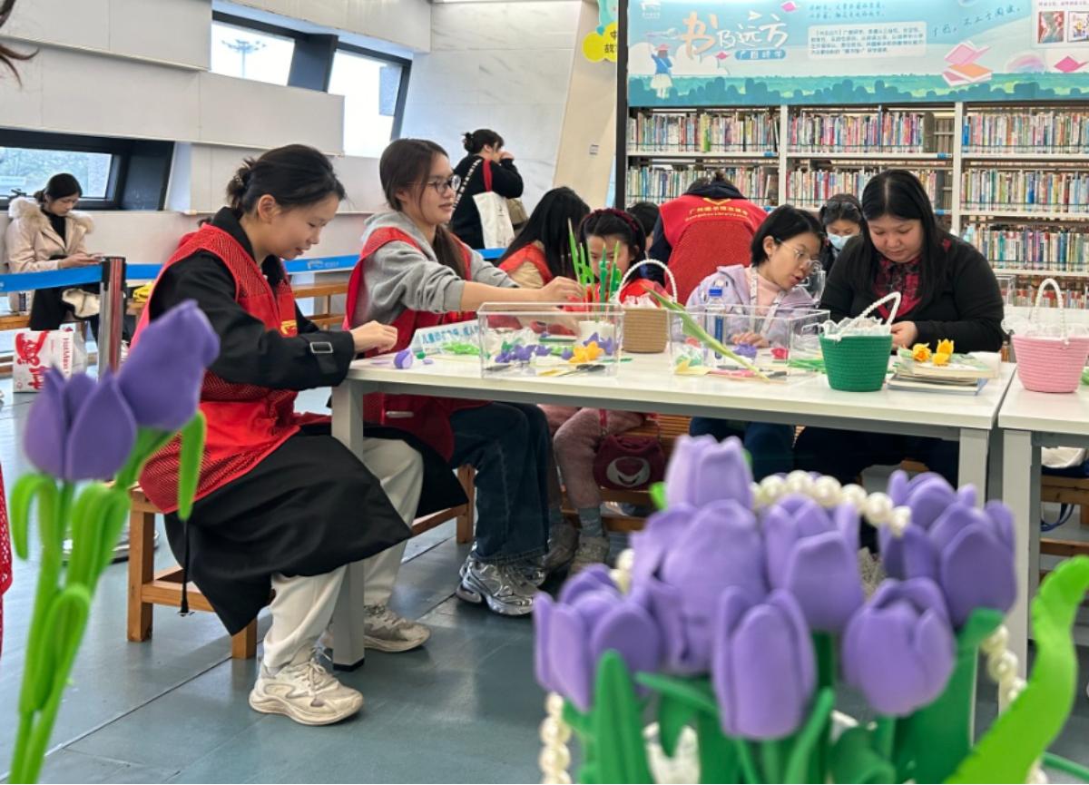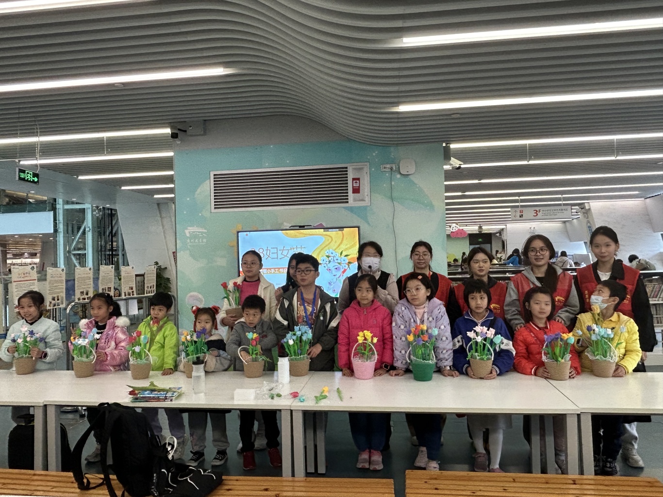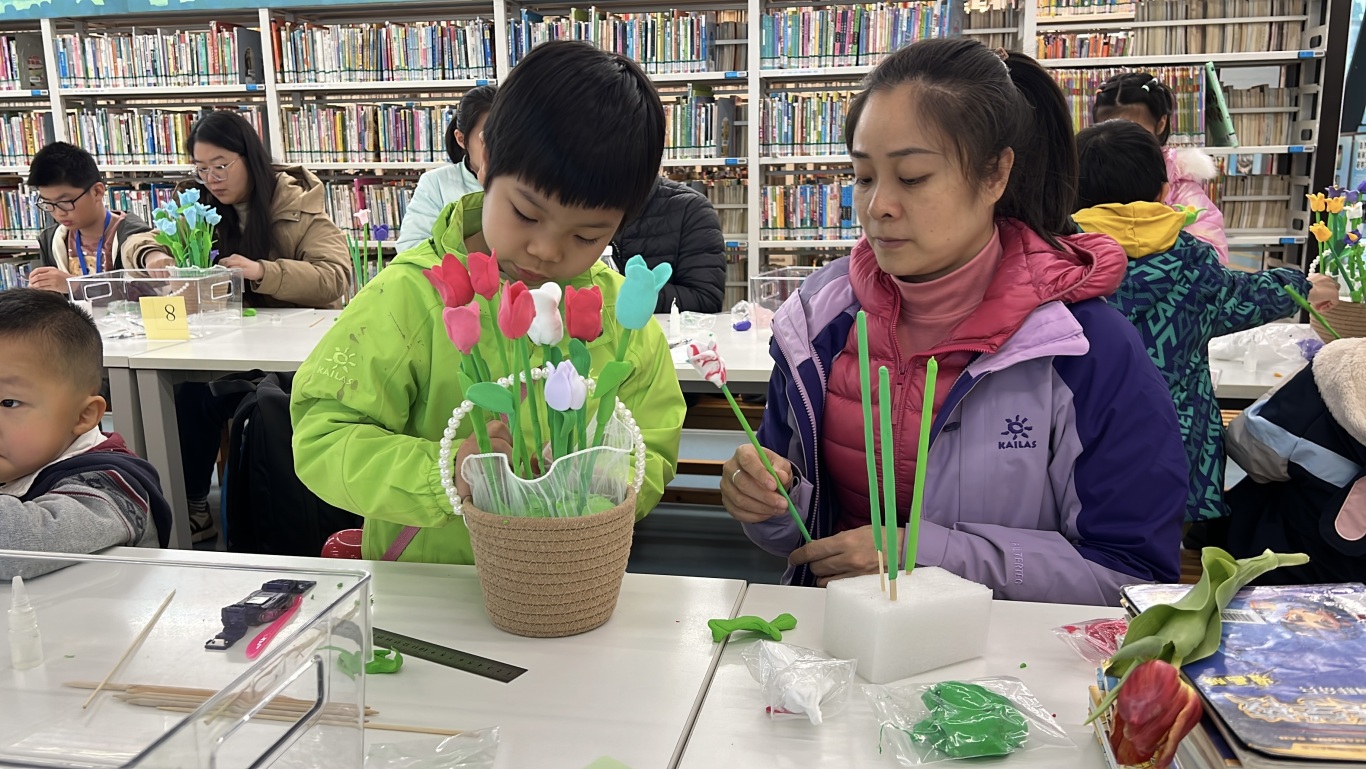 3月8日国际妇女节当天,广州图书馆南三楼的少儿阅览区被温馨与欢乐的氛围所环绕,一场充满爱意的亲子粘土花束制作活动在此圆满举行。此次活动精心邀约了13组7 - 12岁的读者亲子家庭参与,旨在借助妇女节这个特殊契机,为孩子们搭建一个表达情感的平台,让他们通过亲手制作粘土花束,向身边的女性长辈倾诉敬爱与感恩,同时也为亲子间创造互动交流的空间,培育孩子的动手实践能力与创新创造思维。