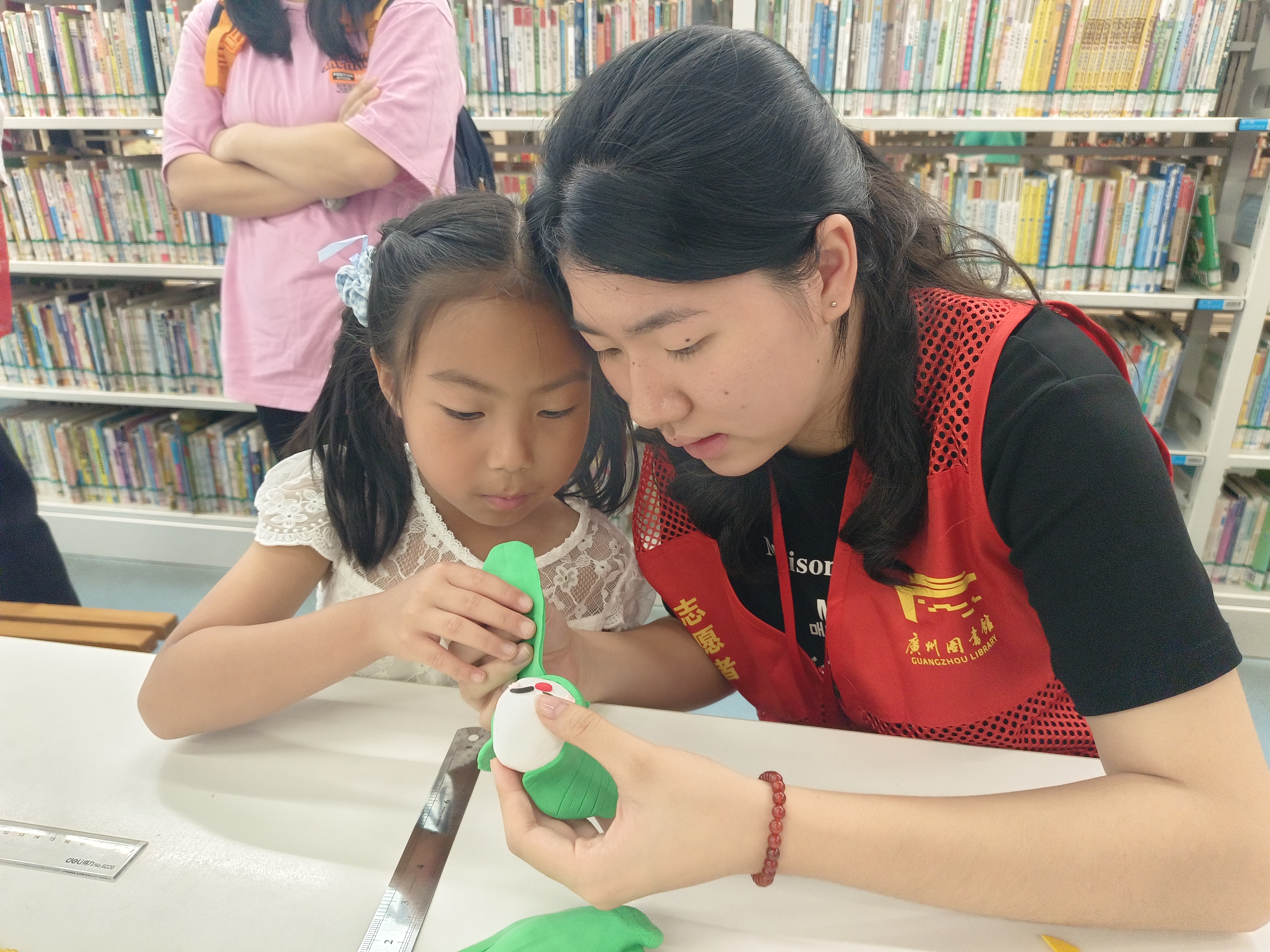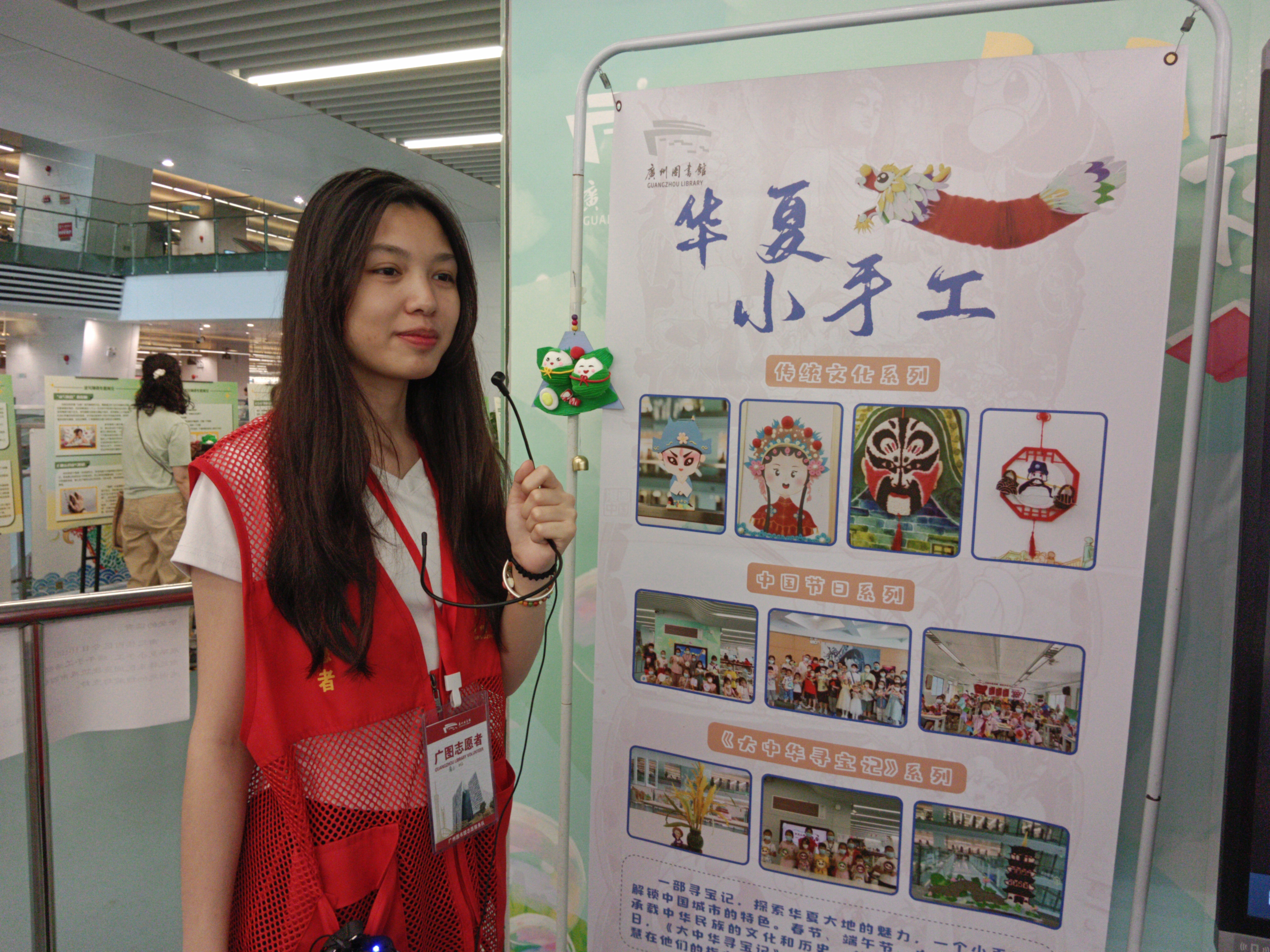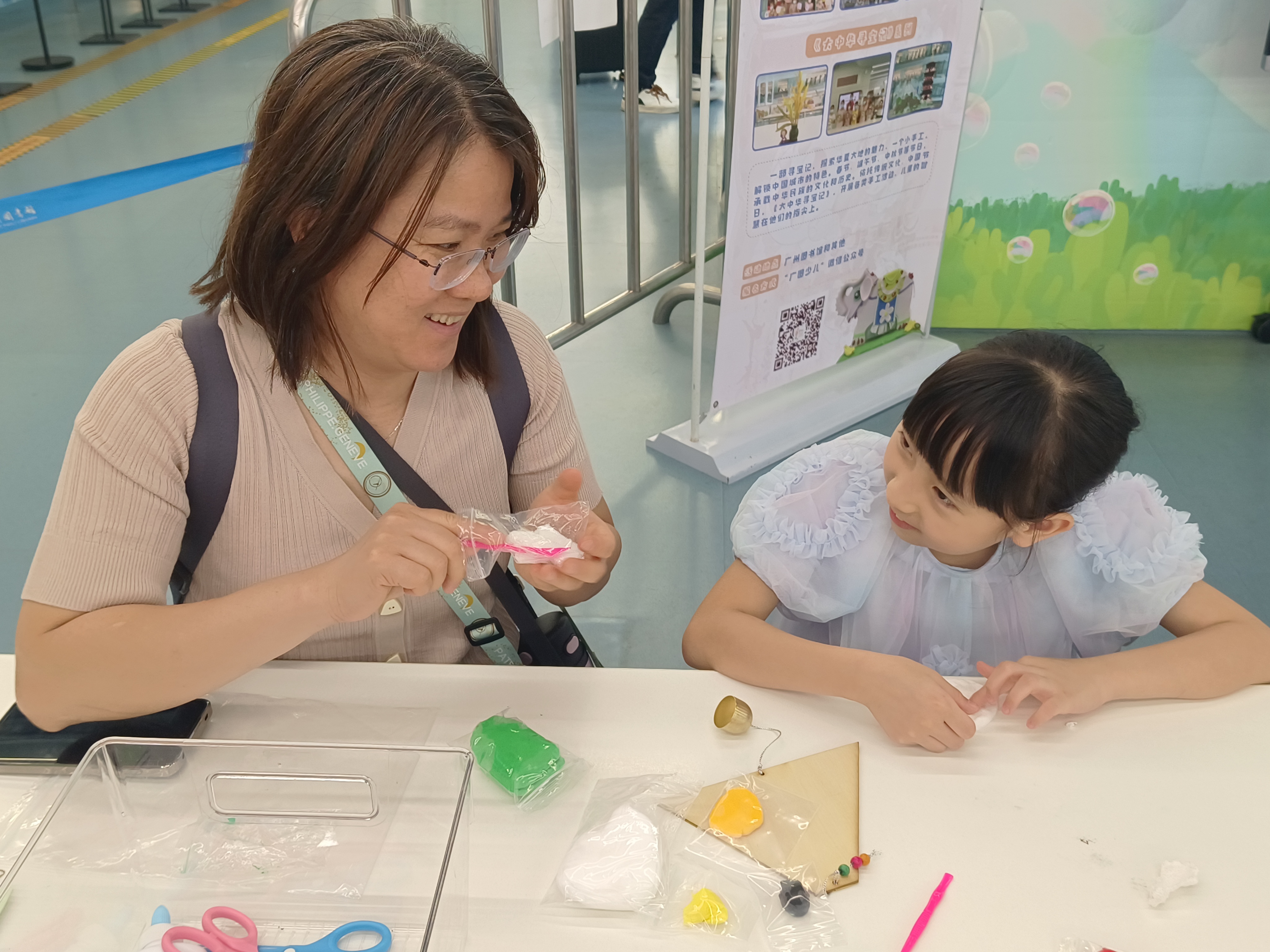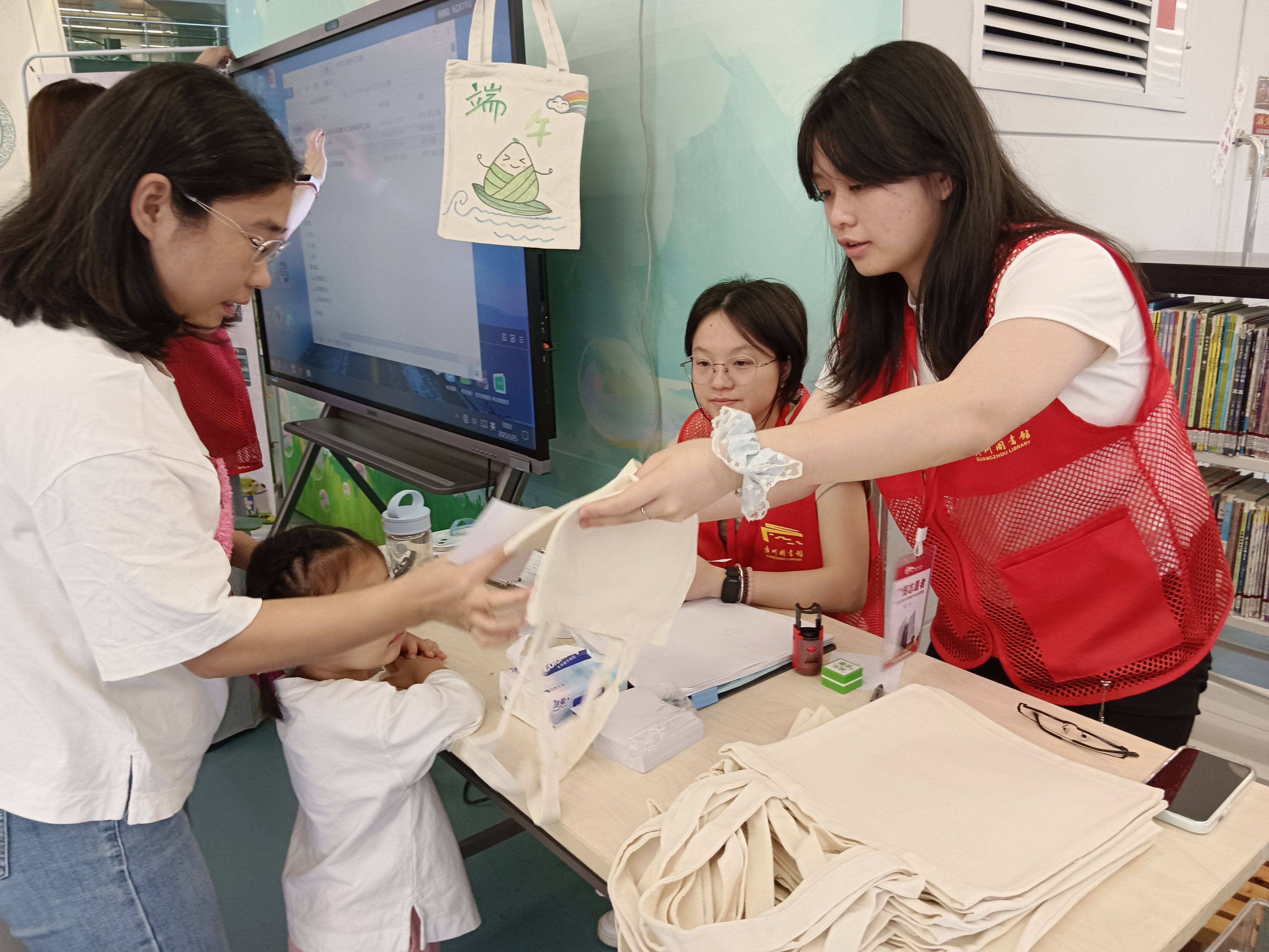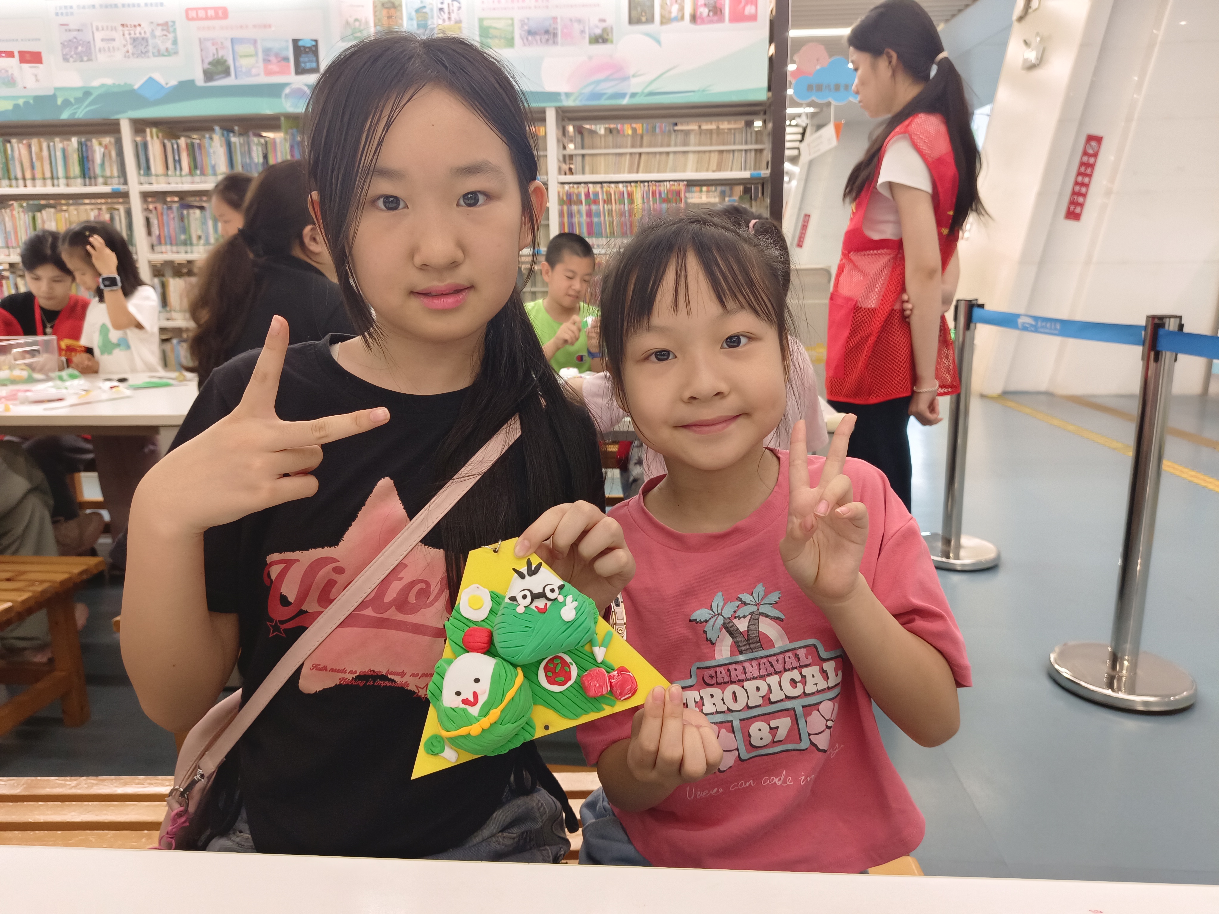 广州图书馆南楼三层“华夏小手工”活动于2025年5月25日热闹开展。宽敞明亮的空间里,长桌整齐摆放,画端午帆布袋、捏粽子风铃、做冰箱贴、拼贴小挂件,两百多组亲子家庭专注又认真。