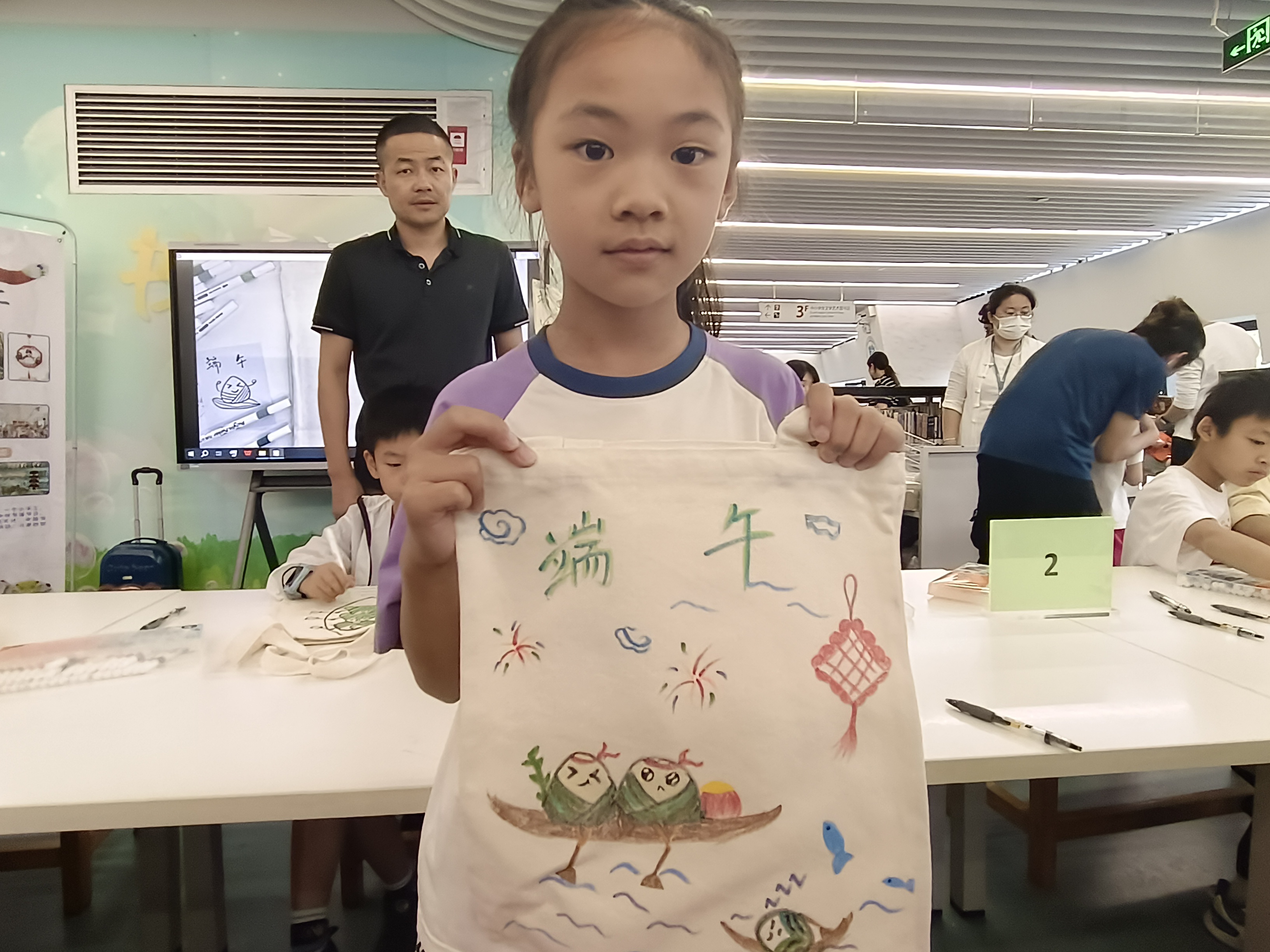 稚手执笔,在帆布袋上晕开龙舟的碧浪;