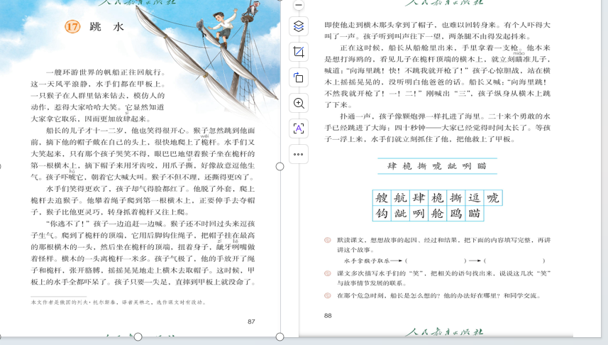 当孩子们得知《战争与和平》的作者也曾为儿童创作时,眼中闪动着好奇。语文课本《跳水》中那个为追回帽子而爬上桅杆的男孩,在船长果断命令下勇敢跳水的故事——关于勇气、判断与责任的主题,成为了今天手工创作的灵感源泉。