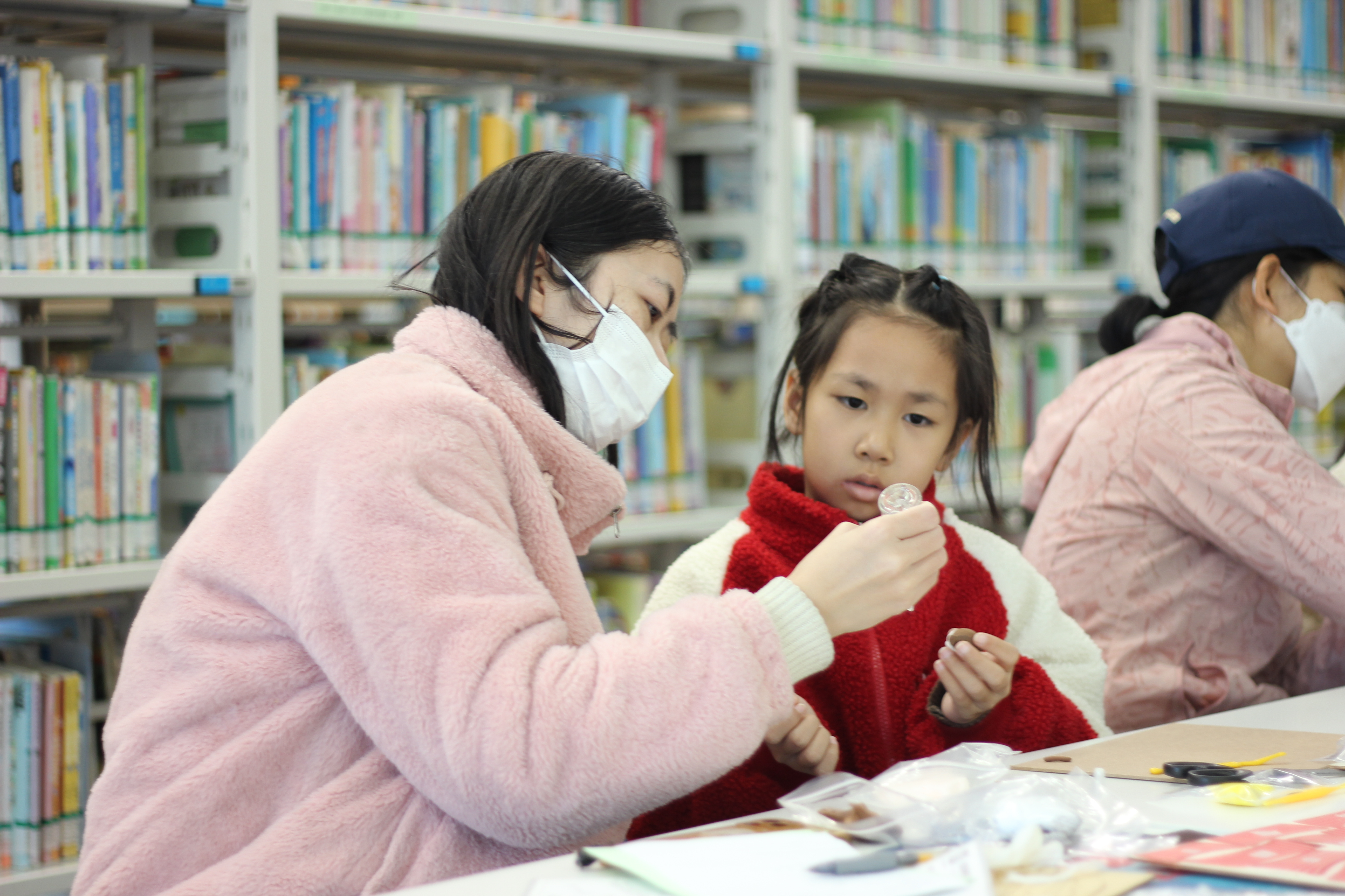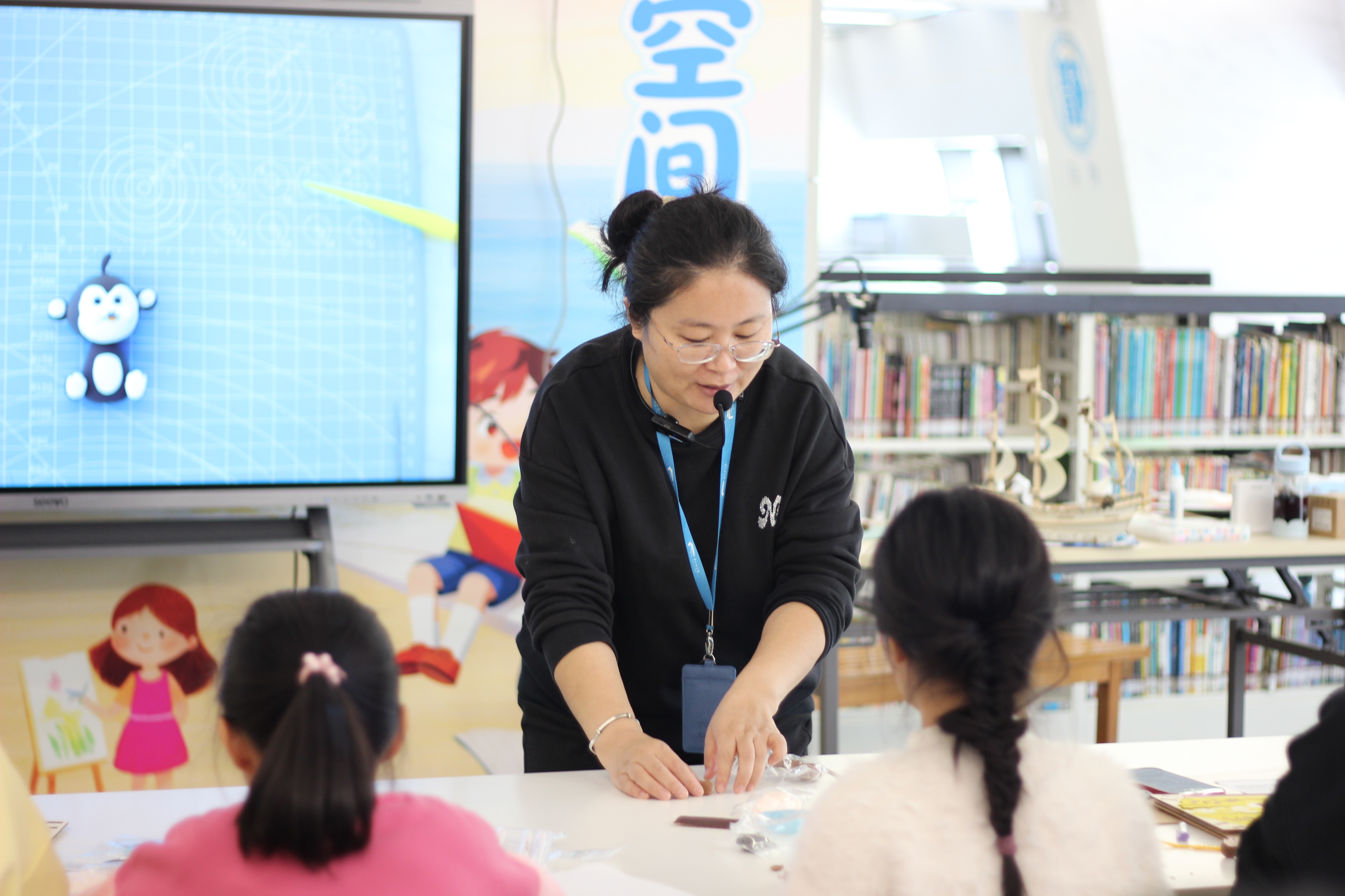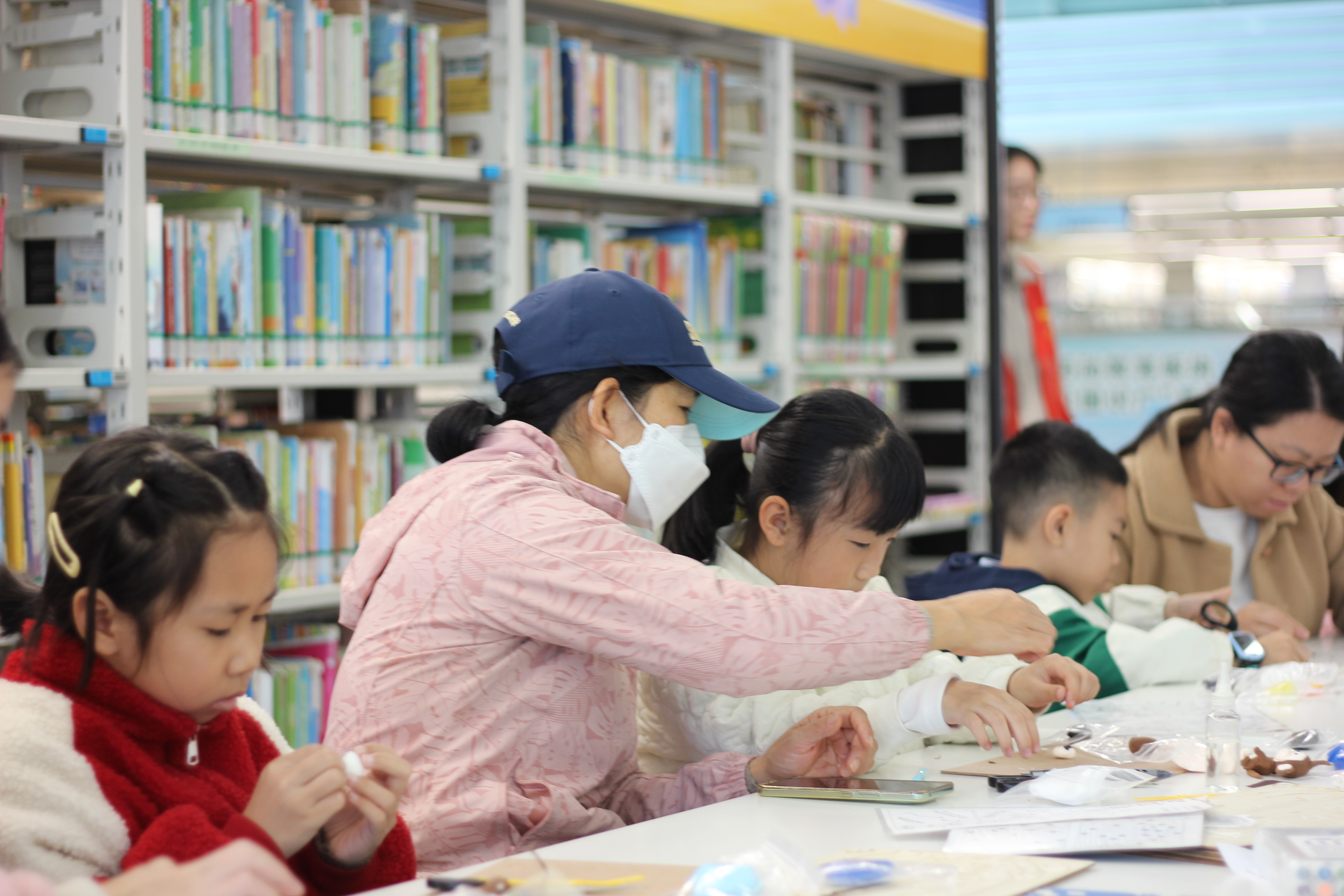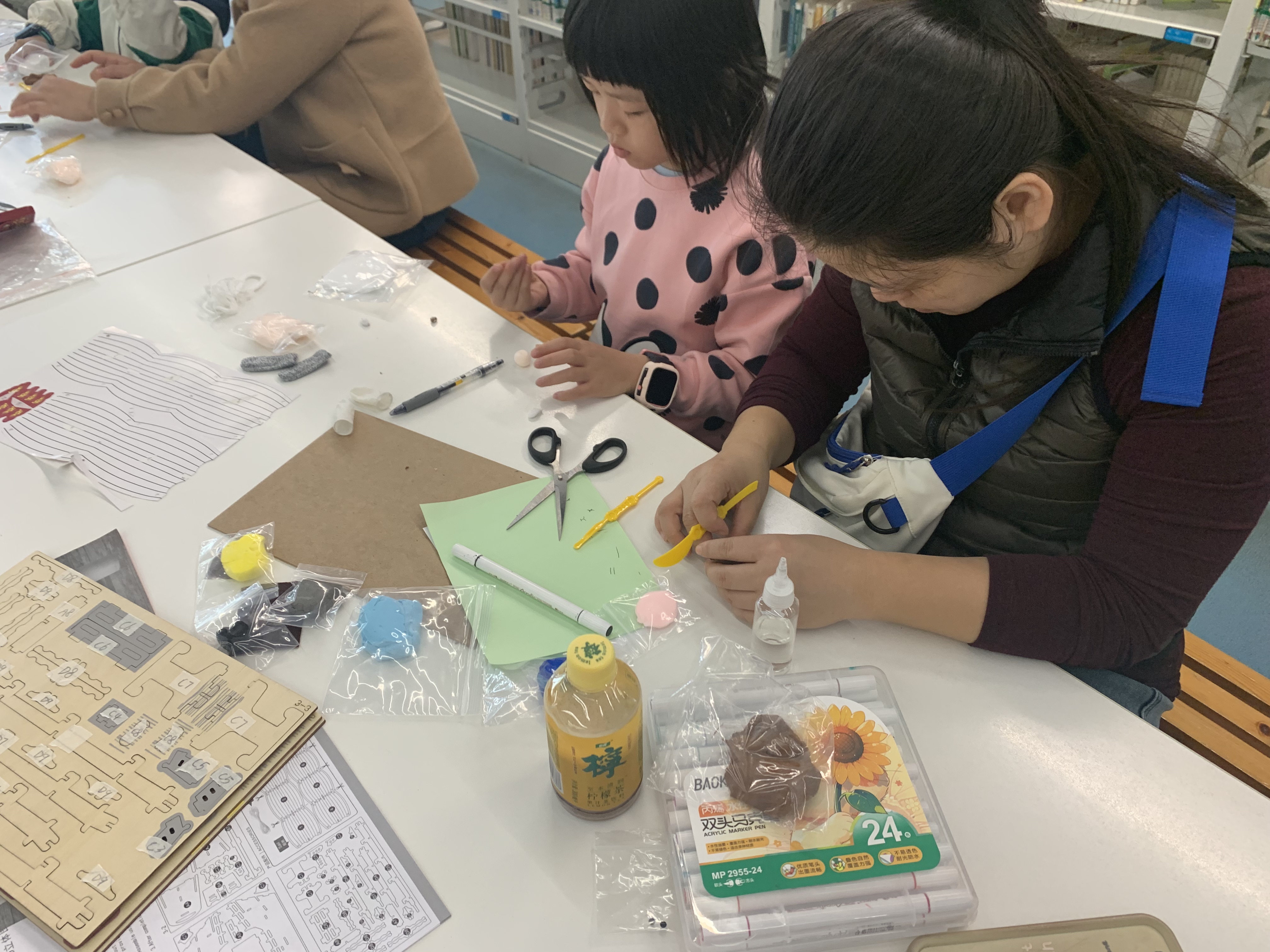 粘土塑形环节,亲子家庭在老师示范下,用彩色粘土塑造故事角色。灵巧的手指捏出圆润的猴脸、俏皮的帽子,以及男孩紧张又倔强的神情。孩子们在塑造中理解人物,家长在旁协助细节,温馨的协作场景随处可见。