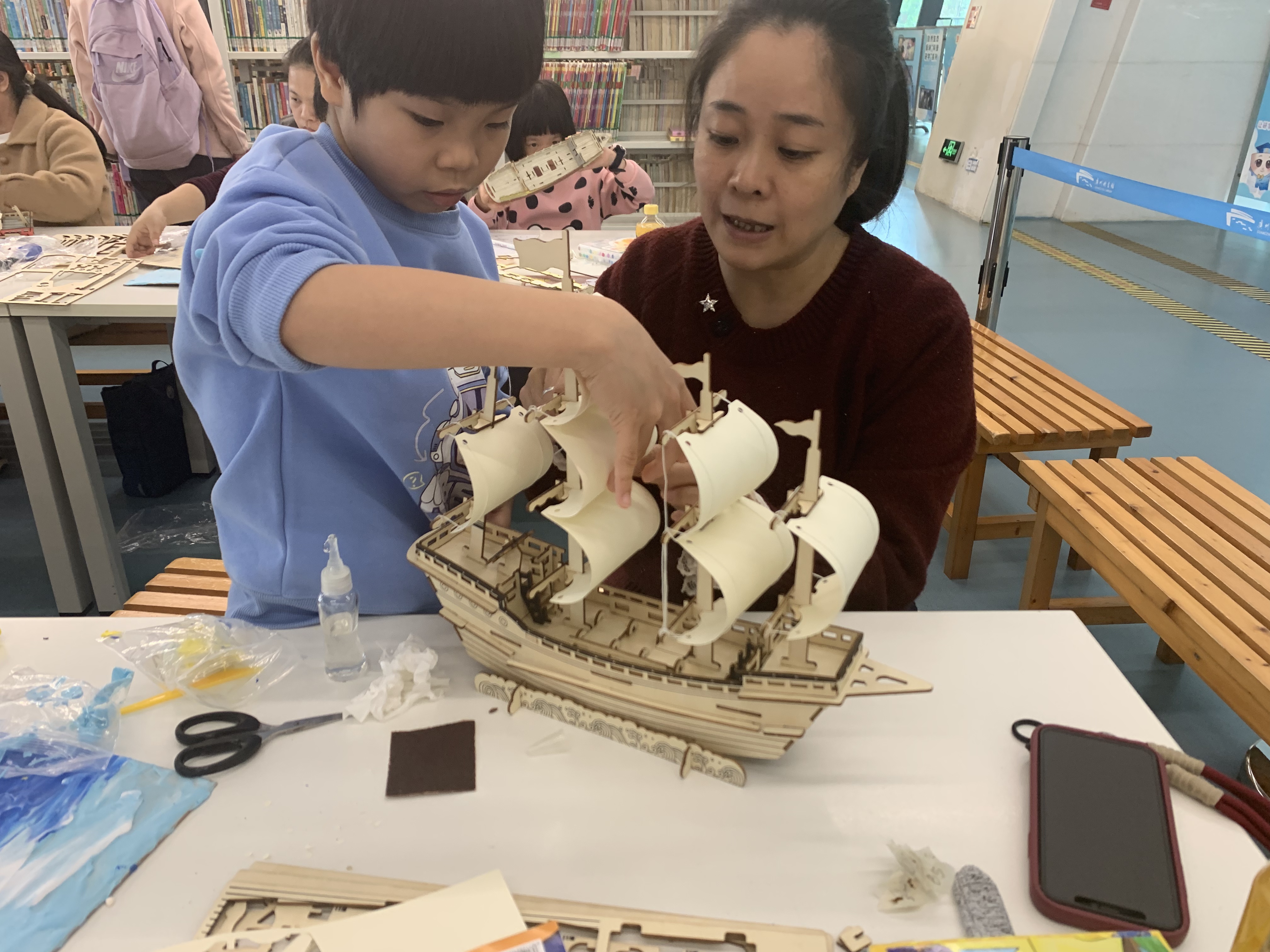 每个家庭合力组装木质帆船模型,从桅杆到风帆,从甲板到绳索,一步步还原故事发生的场景。当十余艘帆船在长桌上“扬帆起航”,现场仿佛变成了托尔斯泰笔下的那片海域。