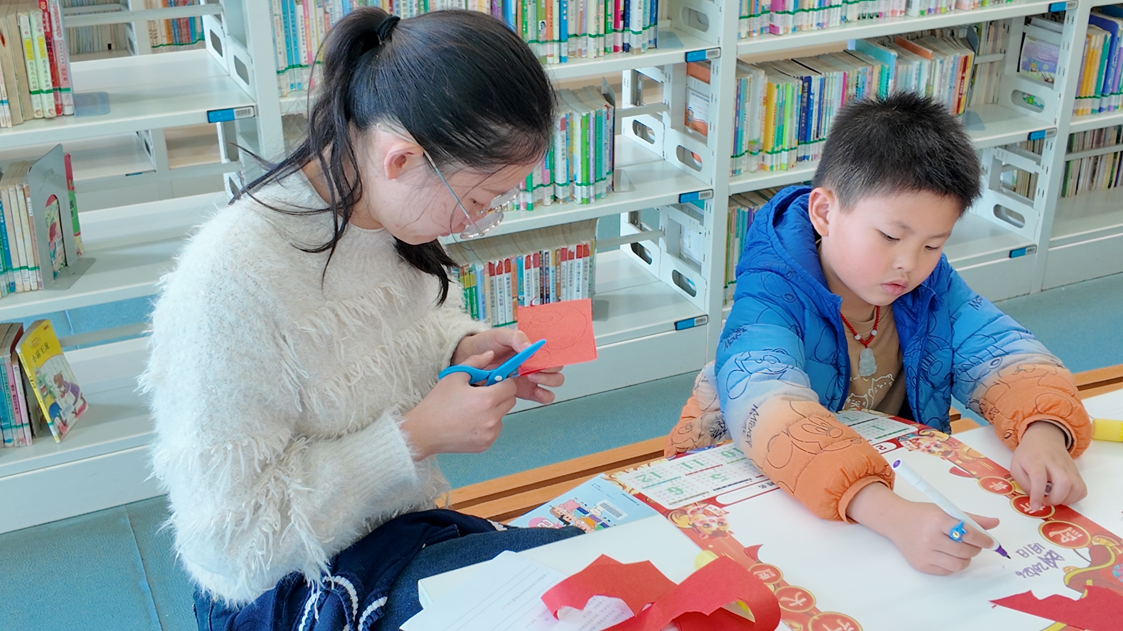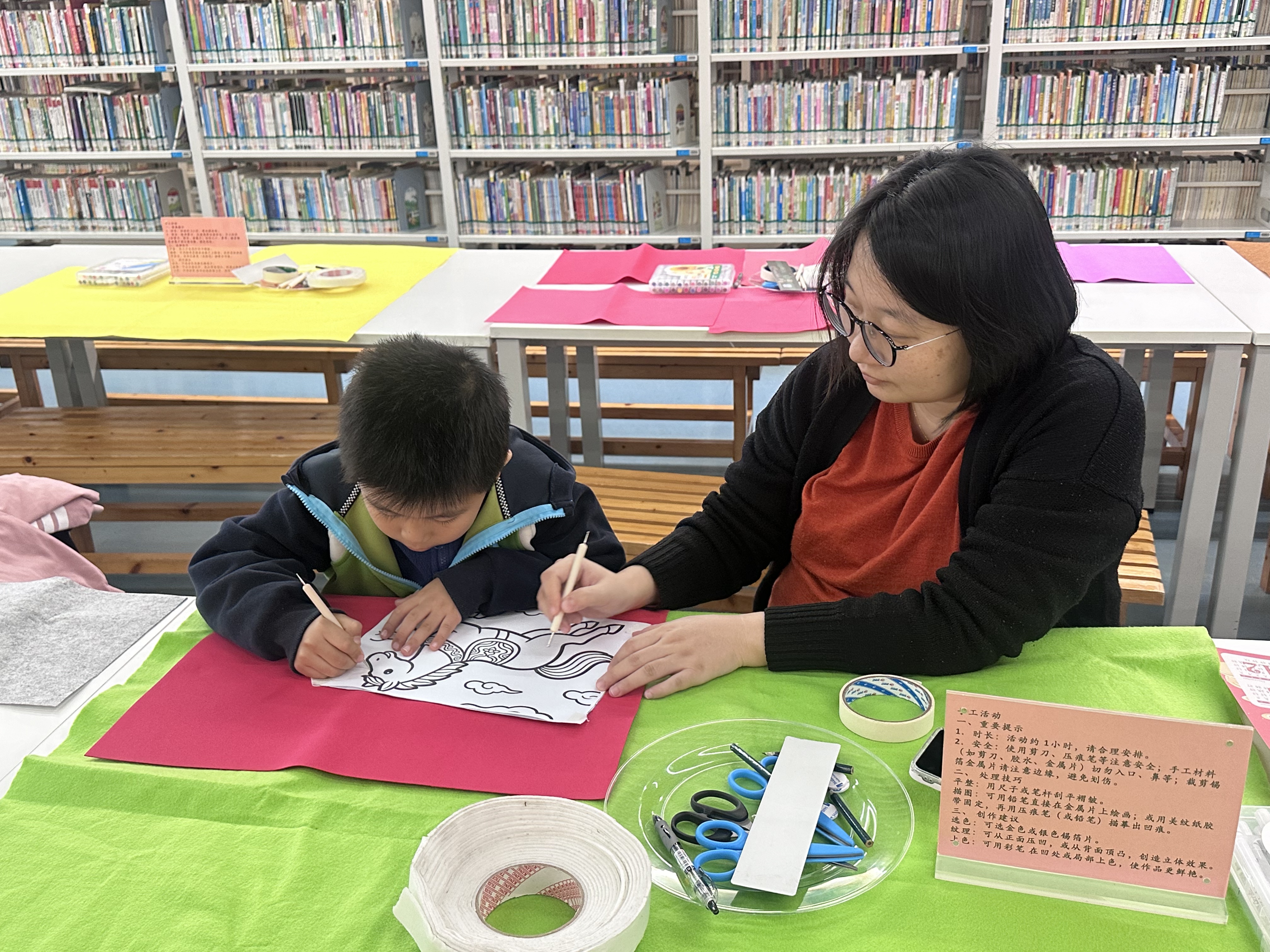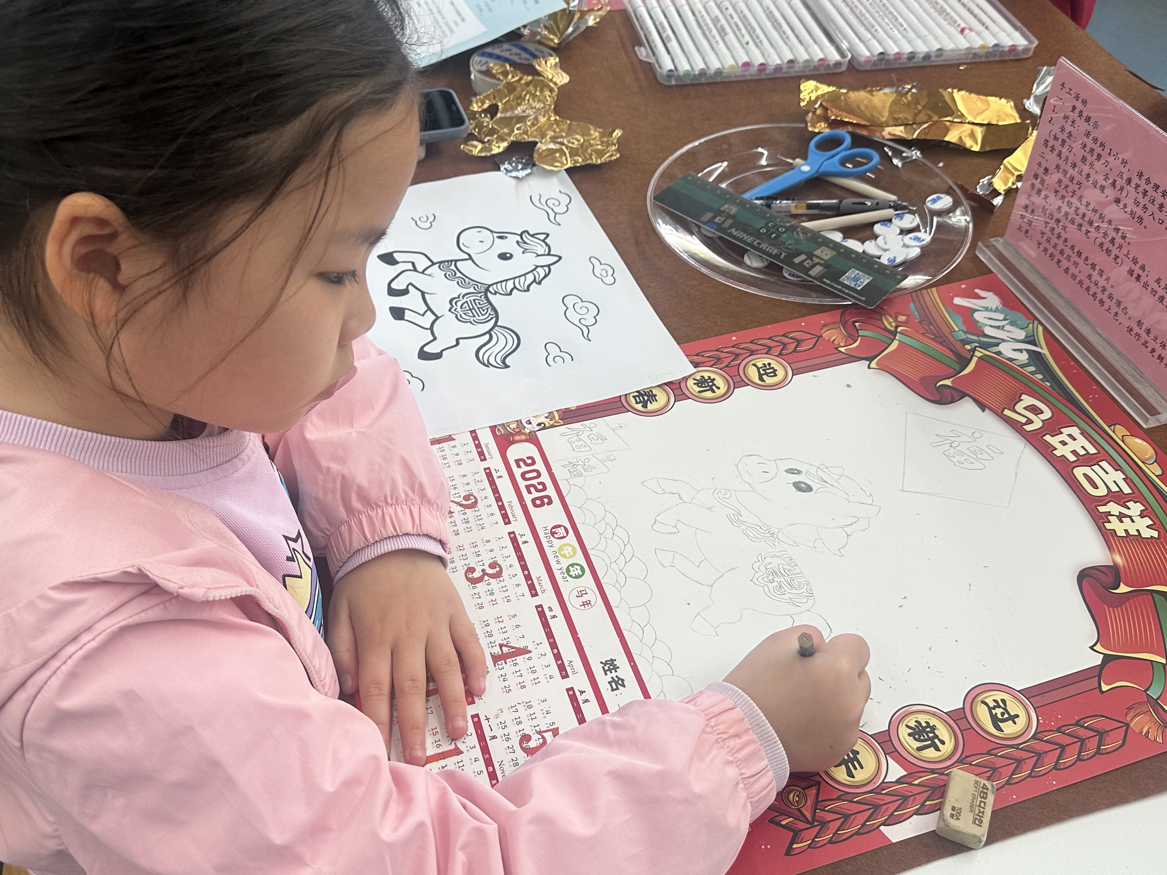 下午的活动则洋溢着喜庆的传统年味。馆员宋老师带领孩子们转向“剪影·日历”创作。红纸翻飞,剪刀穿梭,从折叠到剪刻,灵巧的小马轮廓渐渐浮现。孩子们还创意满满地绘画并裁剪祥云、窗花、福袋……火红的剪纸日历作品,寄托着大家对新年一马当先、马到成功的美好憧憬。