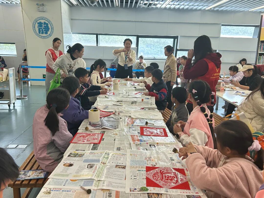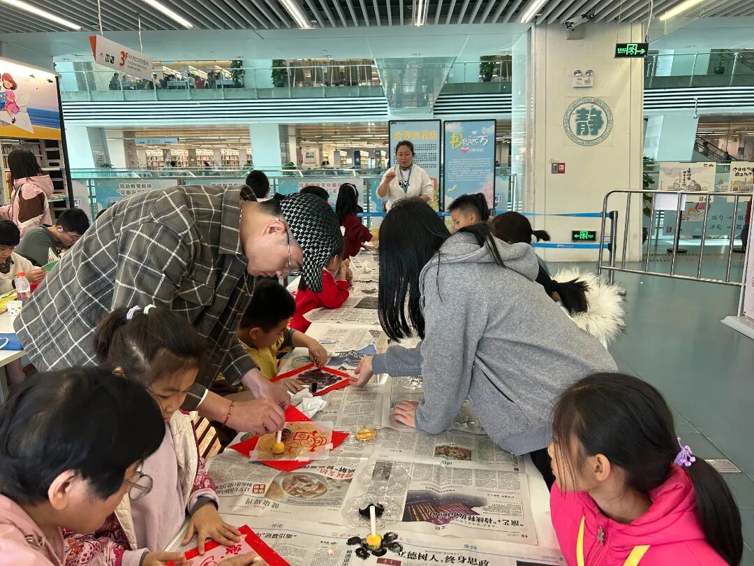 2月2日至8日期间,连续九场亲子拓印体验活动火热开展,累计吸引五百多位大小朋友参与。活动现场,孩子们在馆员宋老师的指导和志愿者的协助下,亲手体验铺纸、上墨、按压等拓印工序。随着一幅幅清晰的图案从雕版上呈现,孩子们在墨香中直观感受到传统印刷技艺的精妙,现场欢声笑语不断。