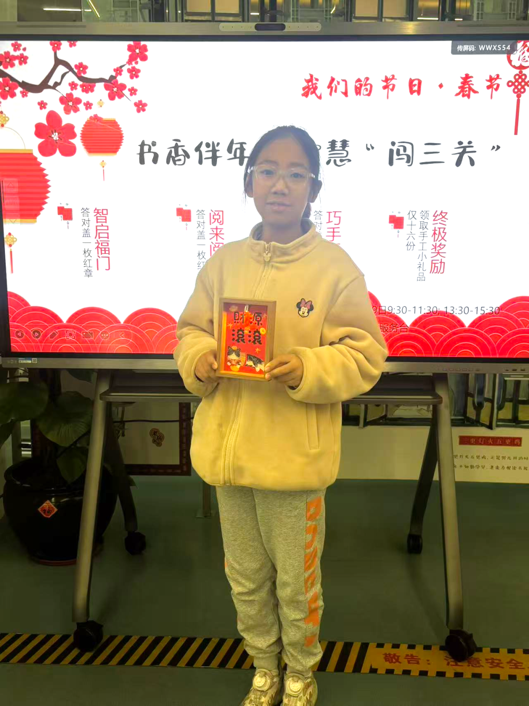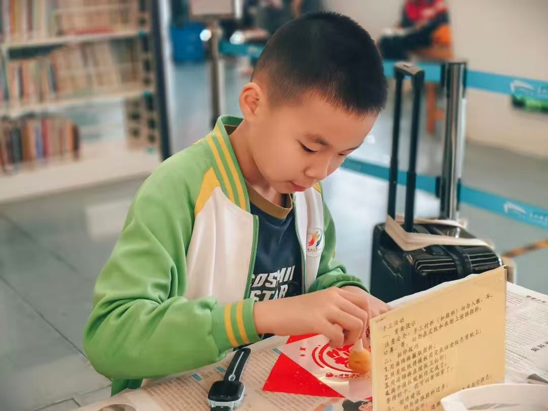 2月19日农历正月初三,两场新春闯三关活动迎来了八十多位大小读者的挑战。活动设置智启福门、阅来阅好、巧手匠心三个环节,小朋友在家长的陪伴下踊跃参与、层层突破,成功闯关的小朋友们领取DIY手工,组装灯盒、绘制团扇和冰箱贴等,喜悦之情溢于言表。这些小小的奖品,不仅是对智慧的奖励,更是新春里最特别的祝福。