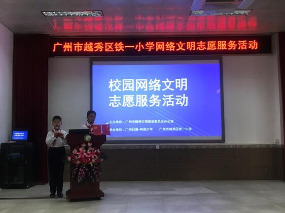 为进一步倡导网络文明新风,推动青少年健康使用网络,保障未成年人身心健康,2019年11月11日,广州市文明办在越秀区铁一小学举办文明上网活动,加强校园网络文化建设,努力为青少年思想道德教育营造风清气正的网络环境。